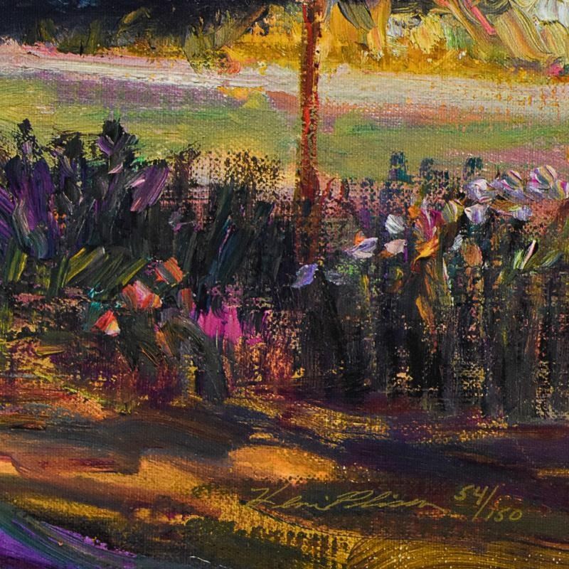 "Casa Majorca" is a limited edition serigraph on canvas by Henri Plisson (1933-2006), numbered 54/150 and hand signed by the artist. Includes Letter of Authenticity. Measures approx. 33" x 25" (image).