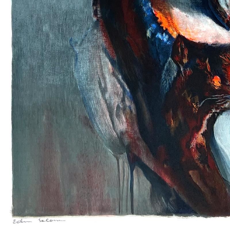 "Cats" is a limited edition serigraph on paper by Edwin Salomon (1935-2014). The piece comes hand signed by the artist numbered and with a letter of authenticity. Measures approximately 28" x 17".