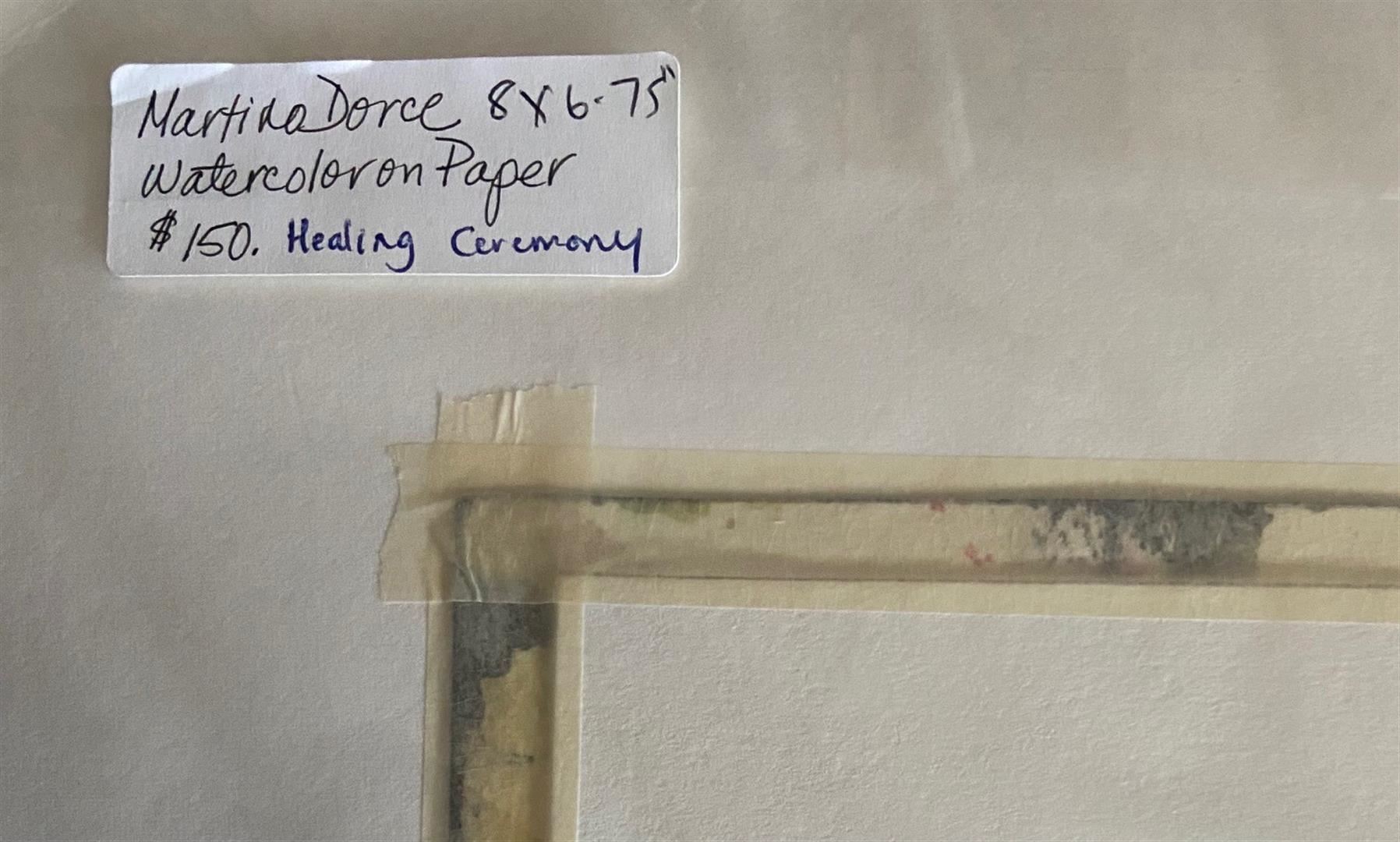Famed Haitian artist Martino Dorce depicts this Voodoo Celebration ritual, in this 8x6" hand-colored pen & ink original on paper.