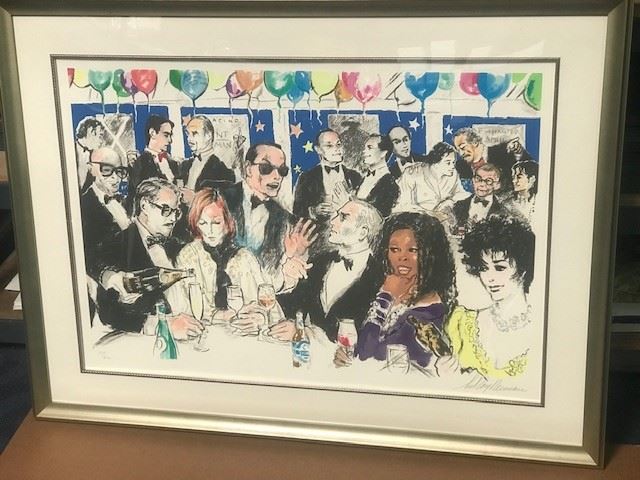 "Celebrity Night at Spago" by LeRoy Neiman (1921-2012) - Hand signed limited edition serigraph - #333 of 600 - 49" x 37"