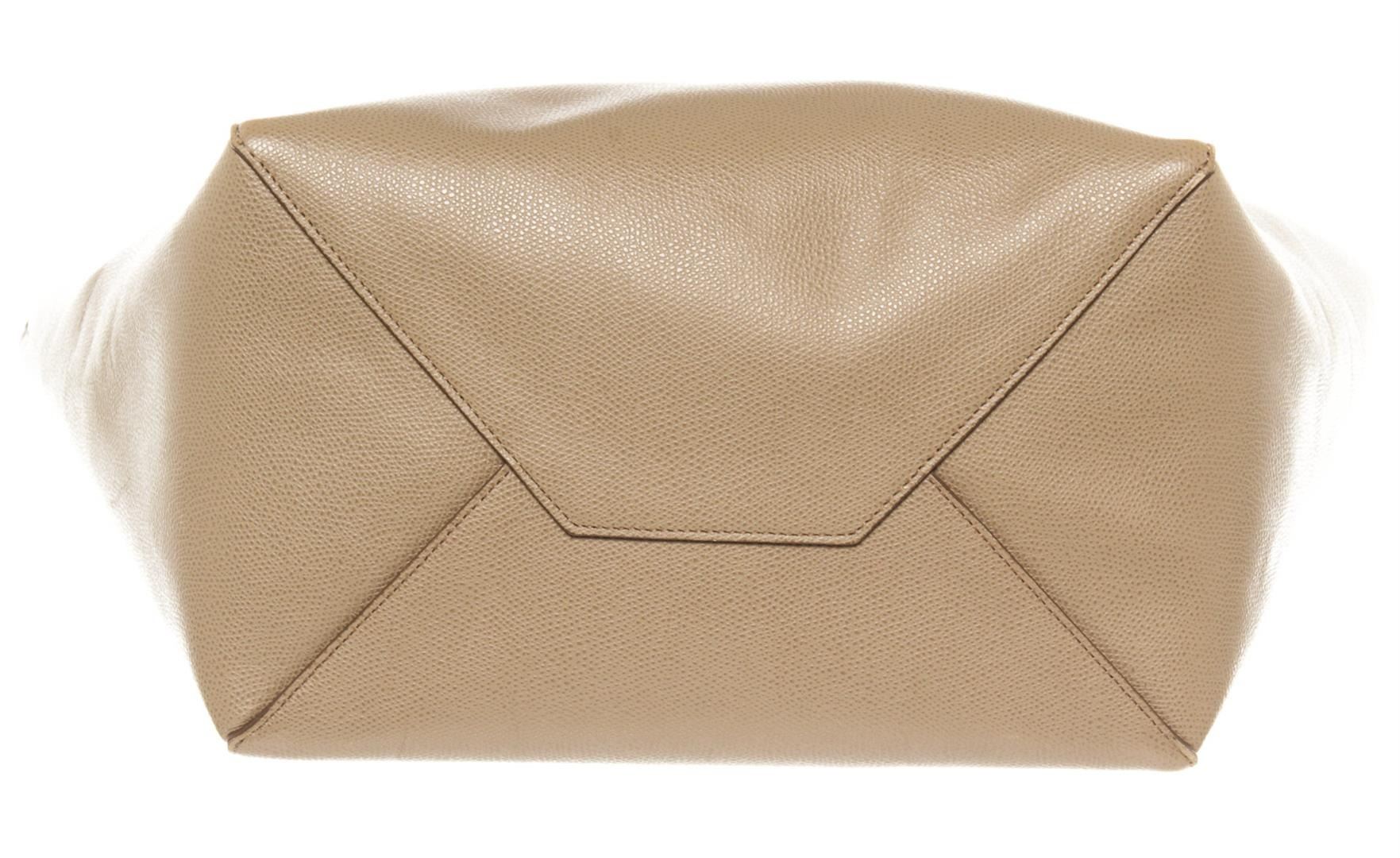 Celine Beige Calfskin Leather Cabas Horizontal Phantom Tote Bag. All available information is listed in the description and shown in the photos. Beige Calfskin leather Celine Cabas Horizontal Phantom tote bag with an open top, two long top handles, internal logo patch, internal zip pocket, tonal leather lining, silver-tone hardware and rectangle body. 5.9"x11"x9.8" 5.9"x11"x9.8"