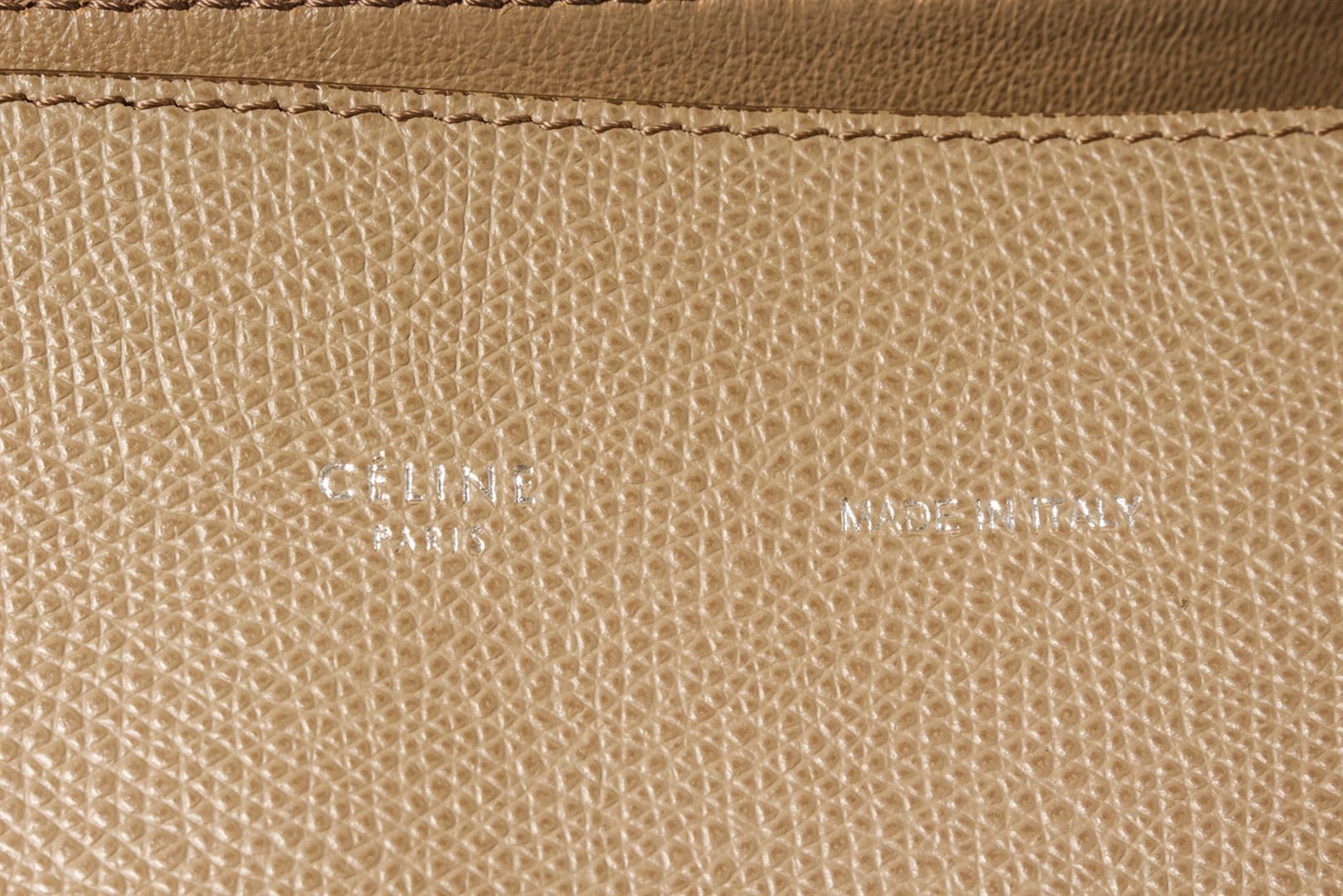 Celine Beige Calfskin Leather Cabas Horizontal Phantom Tote Bag. All available information is listed in the description and shown in the photos. Beige Calfskin leather Celine Cabas Horizontal Phantom tote bag with an open top, two long top handles, internal logo patch, internal zip pocket, tonal leather lining, silver-tone hardware and rectangle body. 5.9"x11"x9.8" 5.9"x11"x9.8"