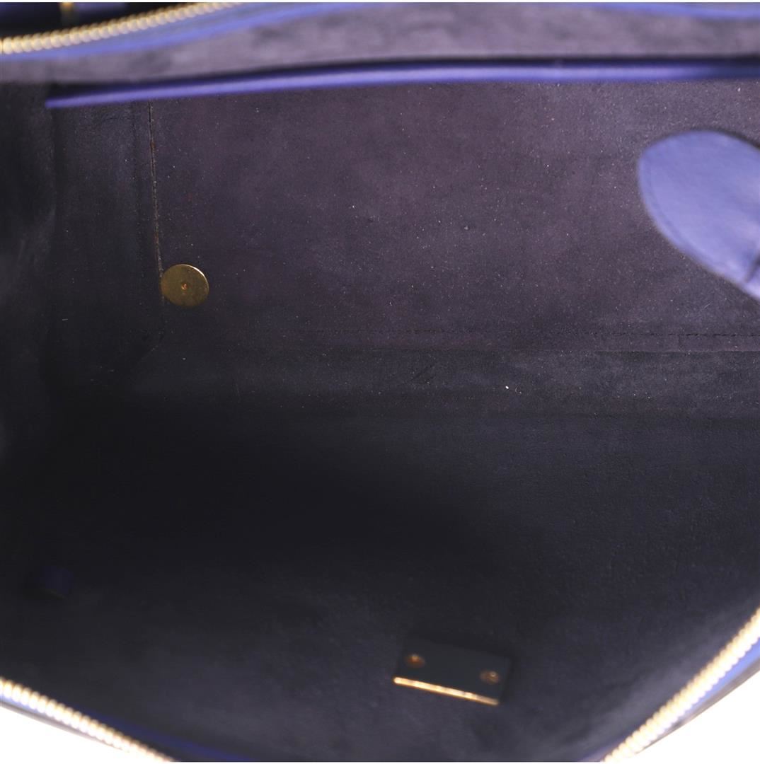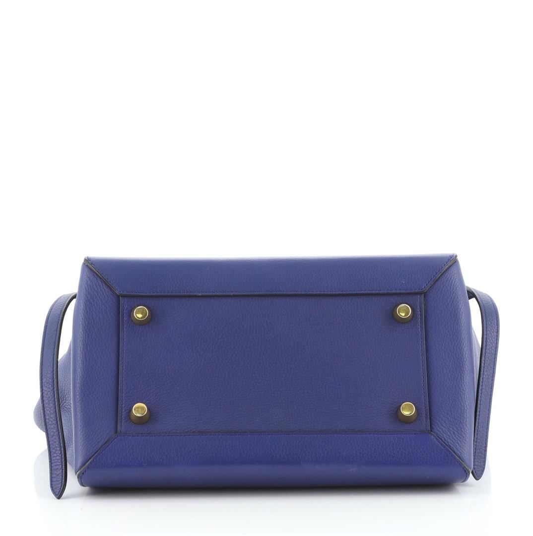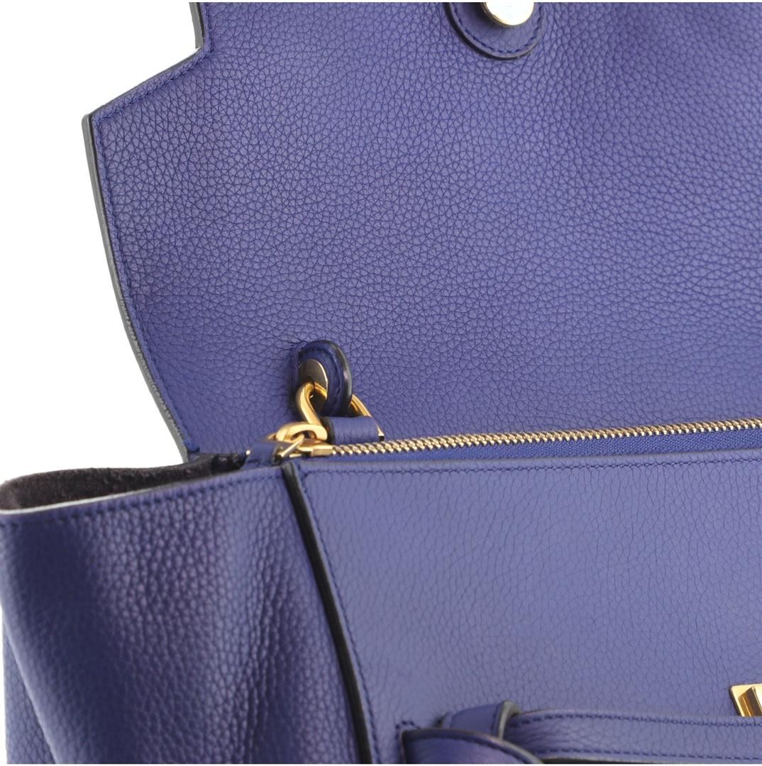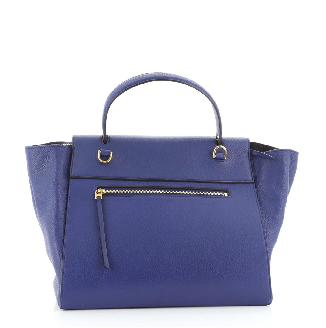 Celine Belt Bag Textured Leather Medium Blue Condition Details: Creasing and scuffs on exterior, splitting on base corner wax edges, minor cracking on opening corner wax edges. Moderate wear and discoloration in interior, scratches on hardware.