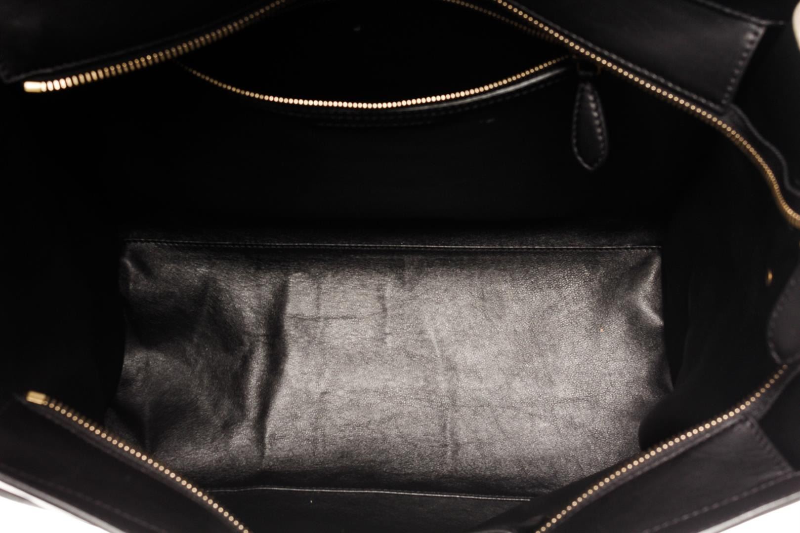 One Celine Black Multicolor Suede Leather Micro Luggage Handbag. Item is sold AS-IS. All available information is listed in the description and shown in the photo. Celine Multicolor Mini Luggage with black and gray leather, beige suede, gold-tone hardware, dual rolled top handles, single zip pocket and foil-stamped logo at front face, protective feet at base, black leather lining, three pockets at interior walls; one with zip closure and zip closure at top. Height 10", Width 10", Depth 5", Handle Drop 23"