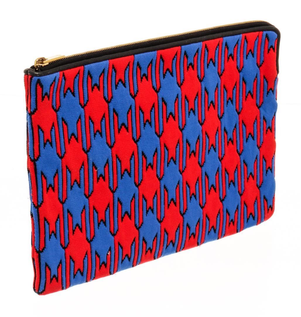 One Celine Blue, Multicolor, Red Fabic Houndstooth Zip Pouch. Item is sold AS-IS. All available information is listed in the description and shown in the photo. celine blue, multicolor, red fabic houndstooth zip pouch with silver tone hardware, interior pocket, zip closure. Height: 21.09 cm (8.3 in), Width: 27.94 cm (11 in), Depth: 5.08 cm (2 in)