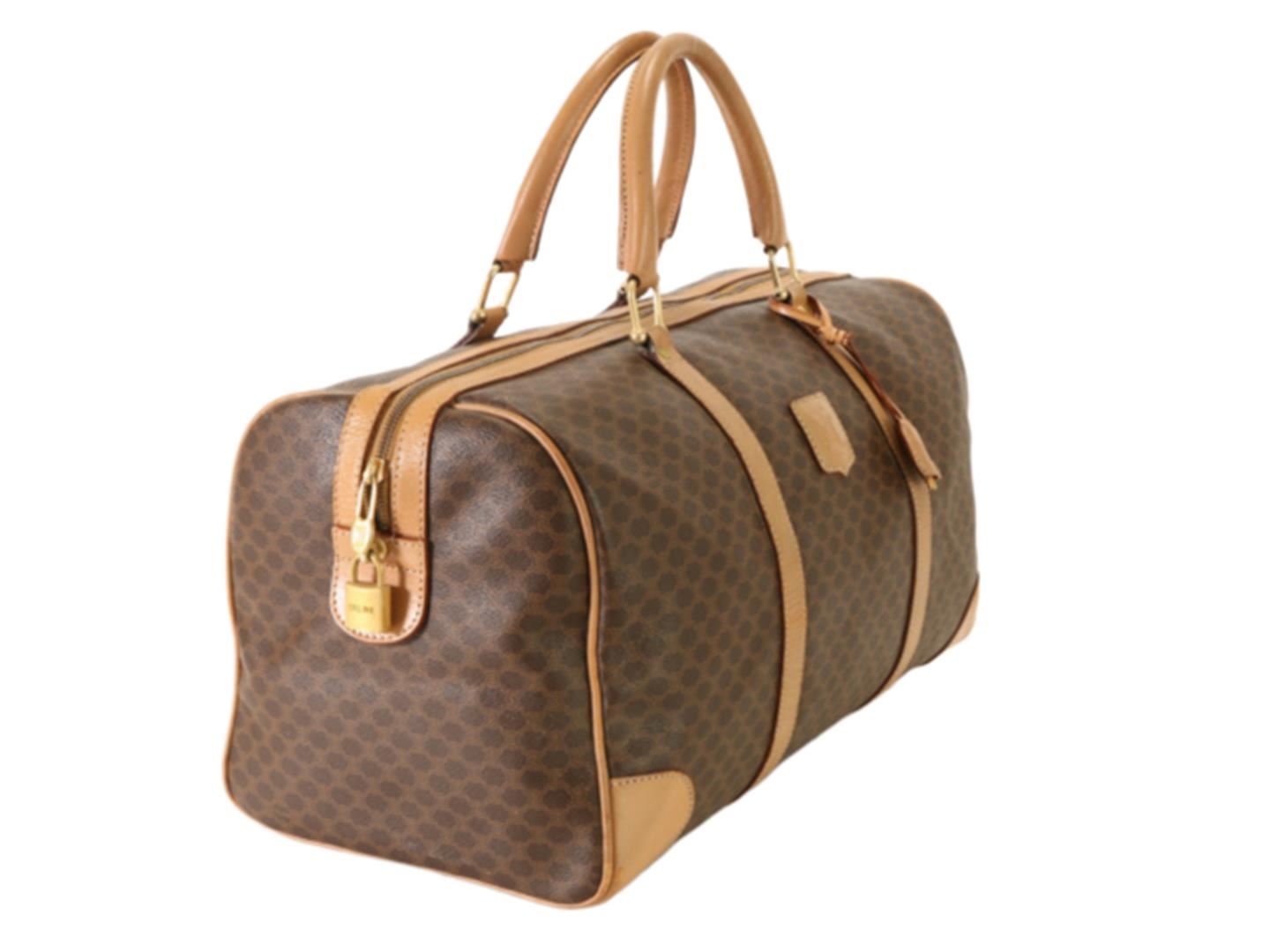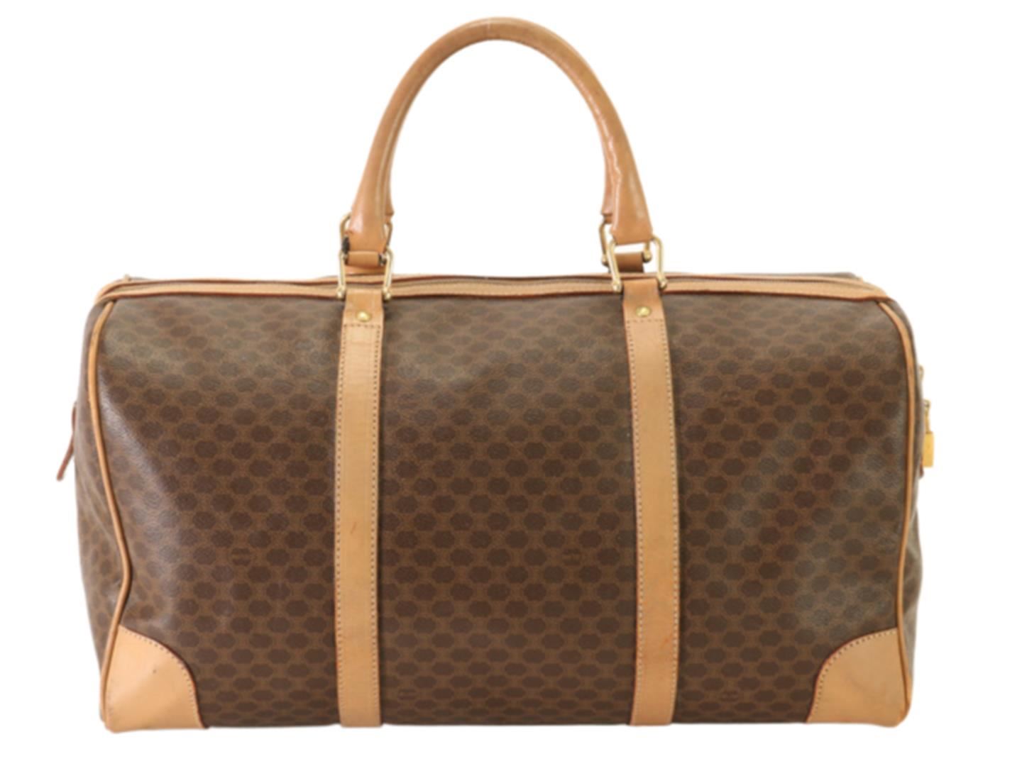One Celine Boston Bag. Item is sold AS-IS. All available information is listed in the description and shown in the photo. Macadam Print Brown