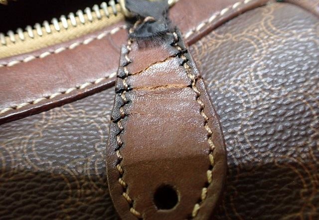 One Celine Boston Bag. Item is sold AS-IS. All available information is listed in the description and shown in the photo. Macadam Print Brown