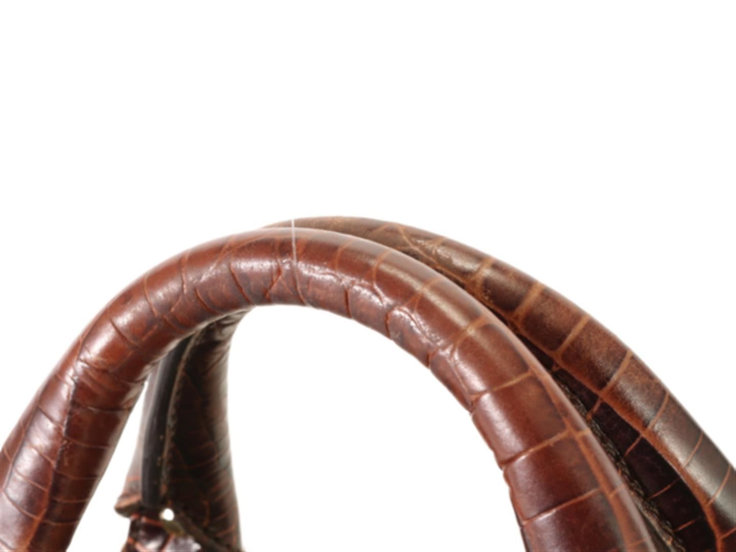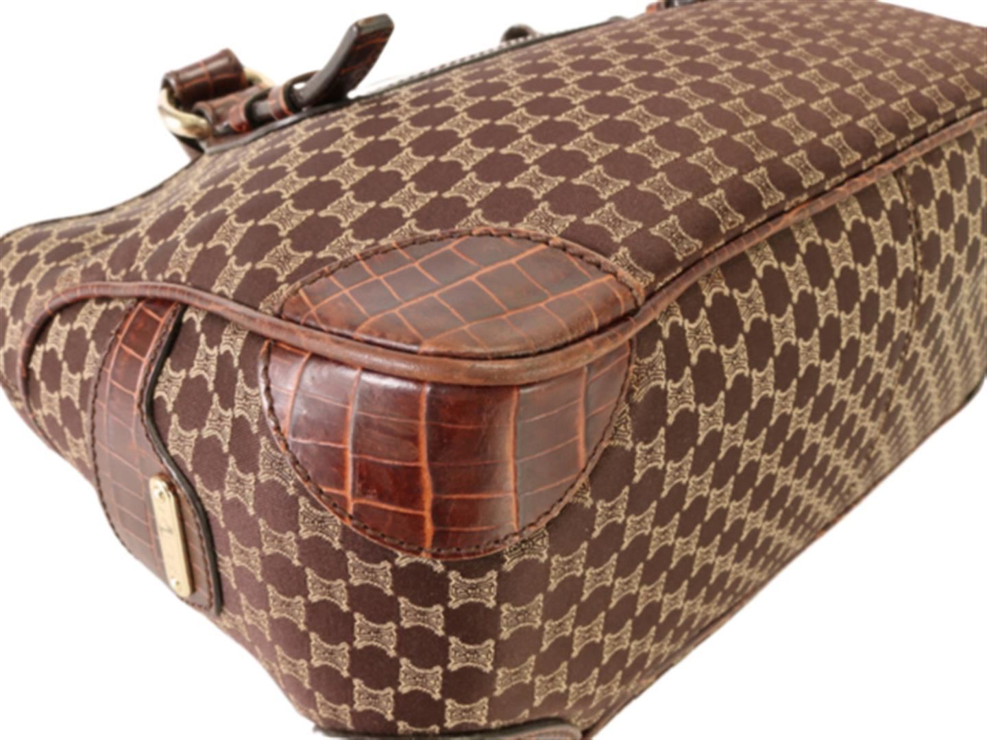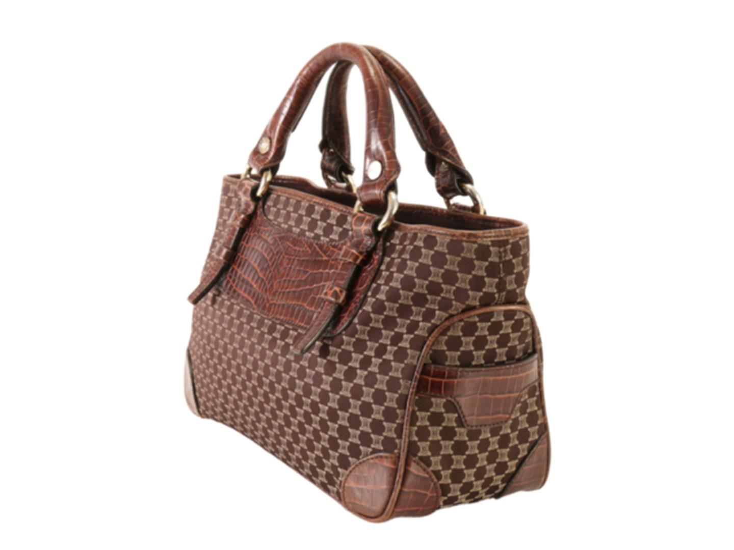 One Celine Brown Canvas & Snake Embossed Leather Boogie Bag. Item is sold AS-IS. All available information is listed in the description and shown in the photo. Macadam Croc