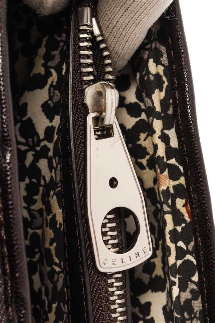Celine Brown Denim Vintage Macadam Boogie Bag. All available information is listed in the description and shown in the photos. Celine Brown Denim Vintage Macadam Boogie Bag with printed, silver-tone hardware, rolled handles, leather trim embellishment, canvas lining & three interior pockets, open top Height: 7.75", Width: 13.75", Depth: 5.5" / 19.68 x 34.92 x 13.97 CM