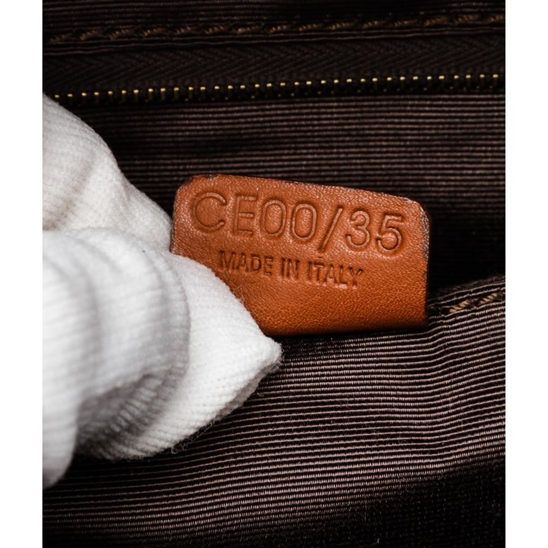 One Celine Chocolate Brown Crocodile Embossed Leather Trunkette Tote Bag. Overall zip around closure. Interior contains fabric lining with one side zipper pocket and two sideip pockets. Exterior contains crossover belt buckles on both sides, crocodile emb