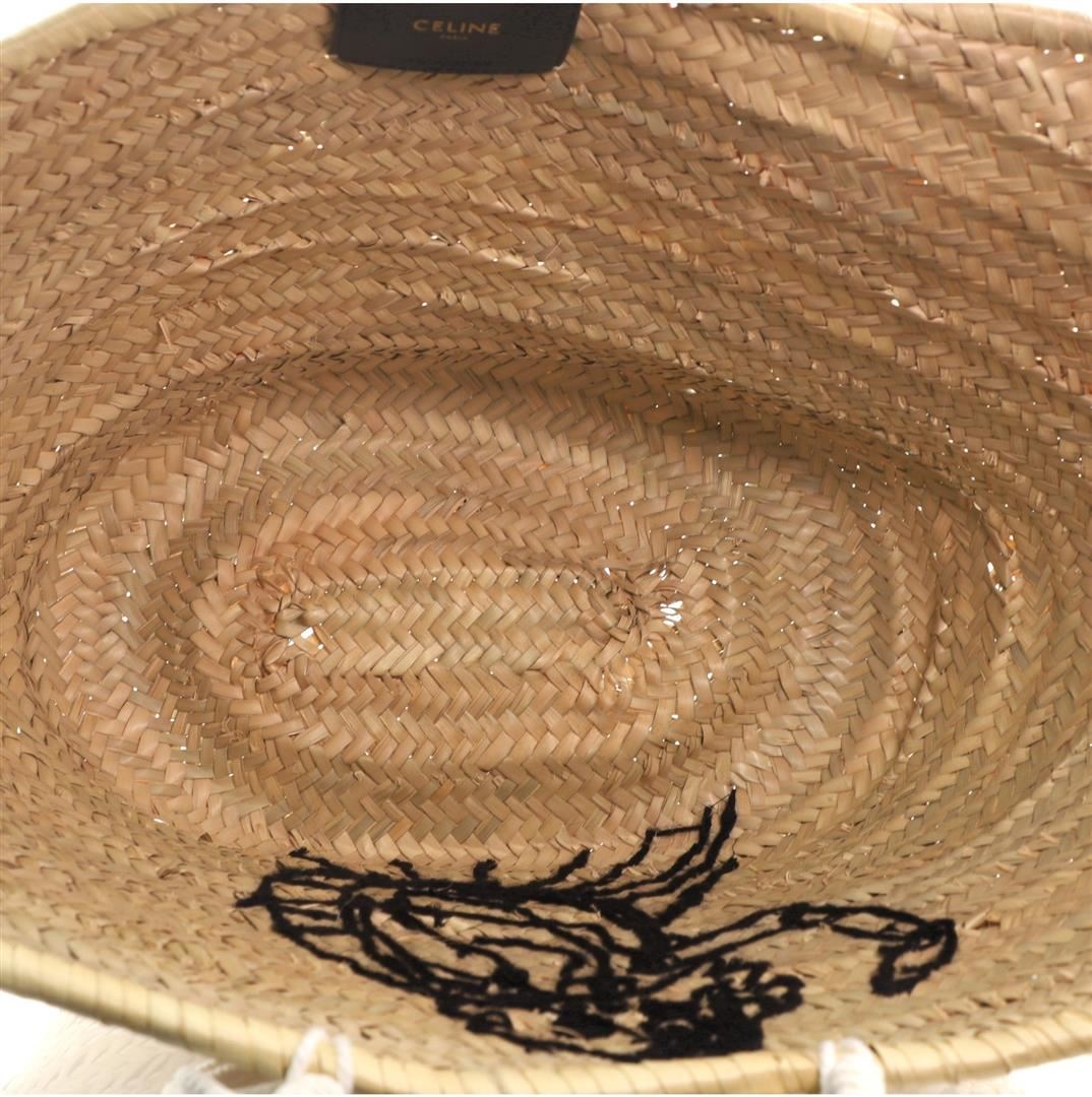 One Celine Classic Panier Basket Tote Limited Edition David Kramer Sequin Embellished Woven Raffia Neutral. Item is sold AS-IS. All available information is listed in the description and shown in the photo. Celine Classic Panier Basket Tote Limited Edition David Kramer Sequin Embellished Woven Raffia Neutral Condition Details: Minor fraying and wear on exterior and in interior. Height ", Width ", Depth ", Strap Drop None