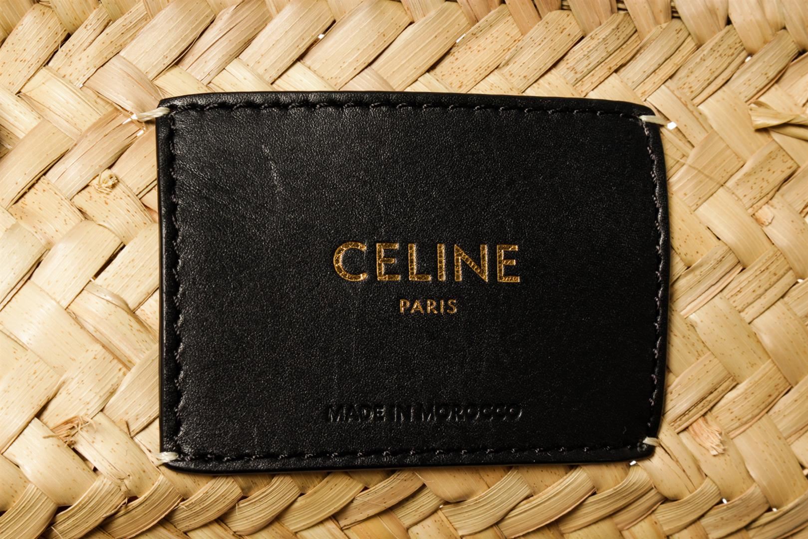 One Celine Neutral Woven Embroidered Straw Classic Panier Bucket Bag. Item is sold AS-IS. All available information is listed in the description and shown in the photo. Neutral/beige embroidered straw Celine Classic Panier bucket bag with dual white canvas shoulder straps, fringe detailing, embroidered front and logo stamp in black leather inside. 11"L x 6.5"W x 13"H 11"L x 6.5"W x 13"H, Handle Drop 13"