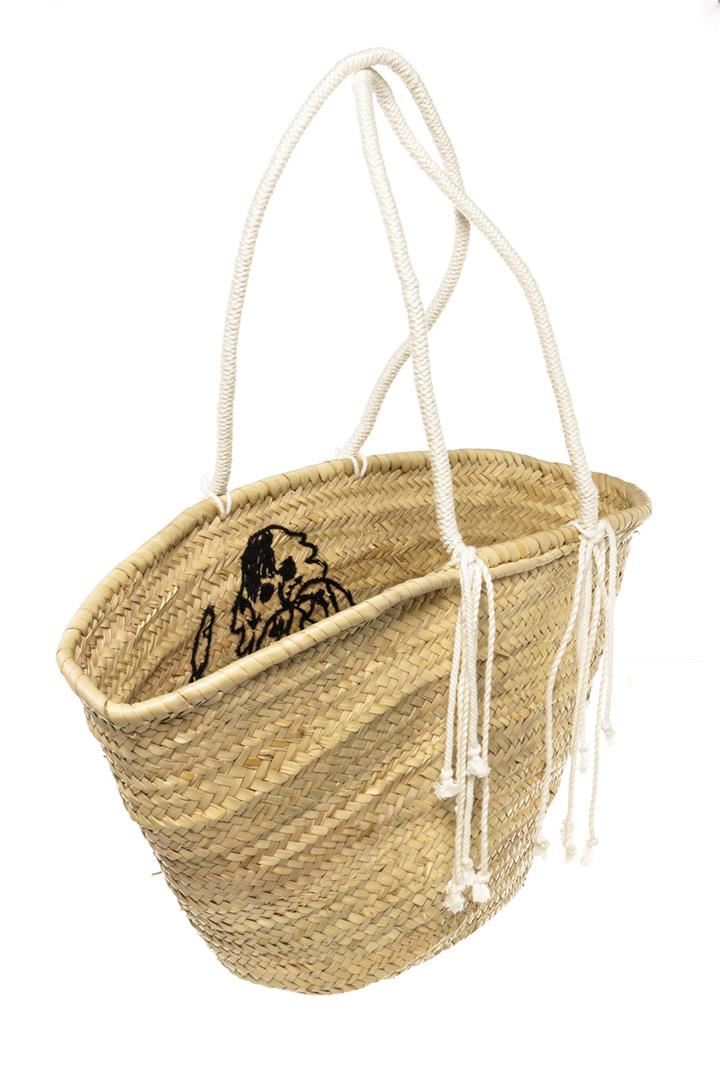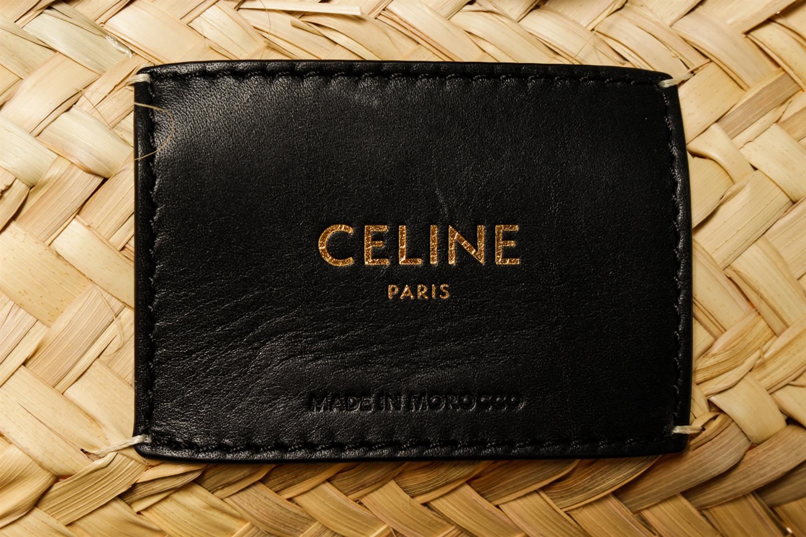 One Celine Neutral Woven Embroidered Straw Classic Panier Bucket Bag. Item is sold AS-IS. All available information is listed in the description and shown in the photo. Neutral/beige embroidered straw Celine Classic Panier bucket bag with dual white canvas shoulder straps, fringe detailing, embroidered front and logo stamp in black leather inside. 11"L x 6.5"W x 13"H, Handle Drop 13"