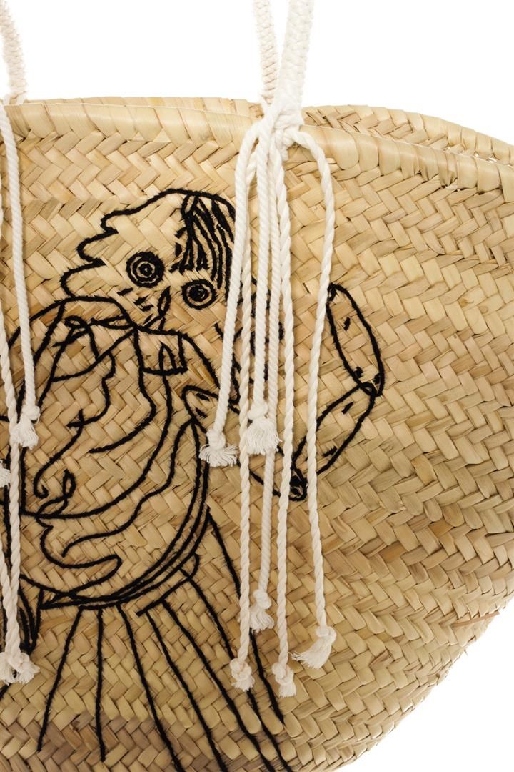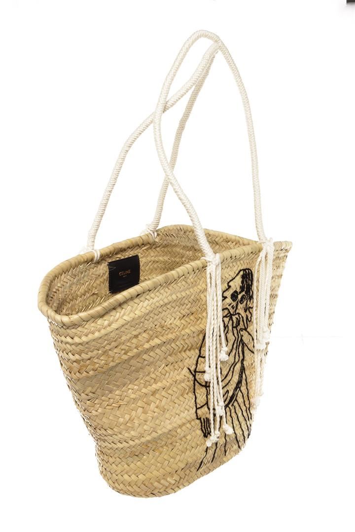One Celine Neutral Woven Embroidered Straw Classic Panier Bucket Bag. Item is sold AS-IS. All available information is listed in the description and shown in the photo. Neutral/beige embroidered straw Celine Classic Panier bucket bag with dual white canvas shoulder straps, fringe detailing, embroidered front and logo stamp in black leather inside. 11"L x 6.5"W x 13"H, Handle Drop 13"