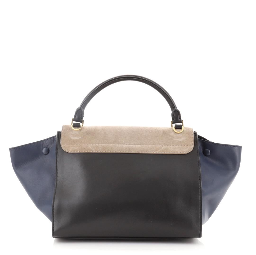 Celine Tricolor Trapeze Bag Suede Medium Neutral. Please see photos and description for all available information! Celine Tricolor Trapeze Bag Suede Medium Beige Bluie Leather Condition Details: Moderate creasing, wear and scuffs on exterior and undernea