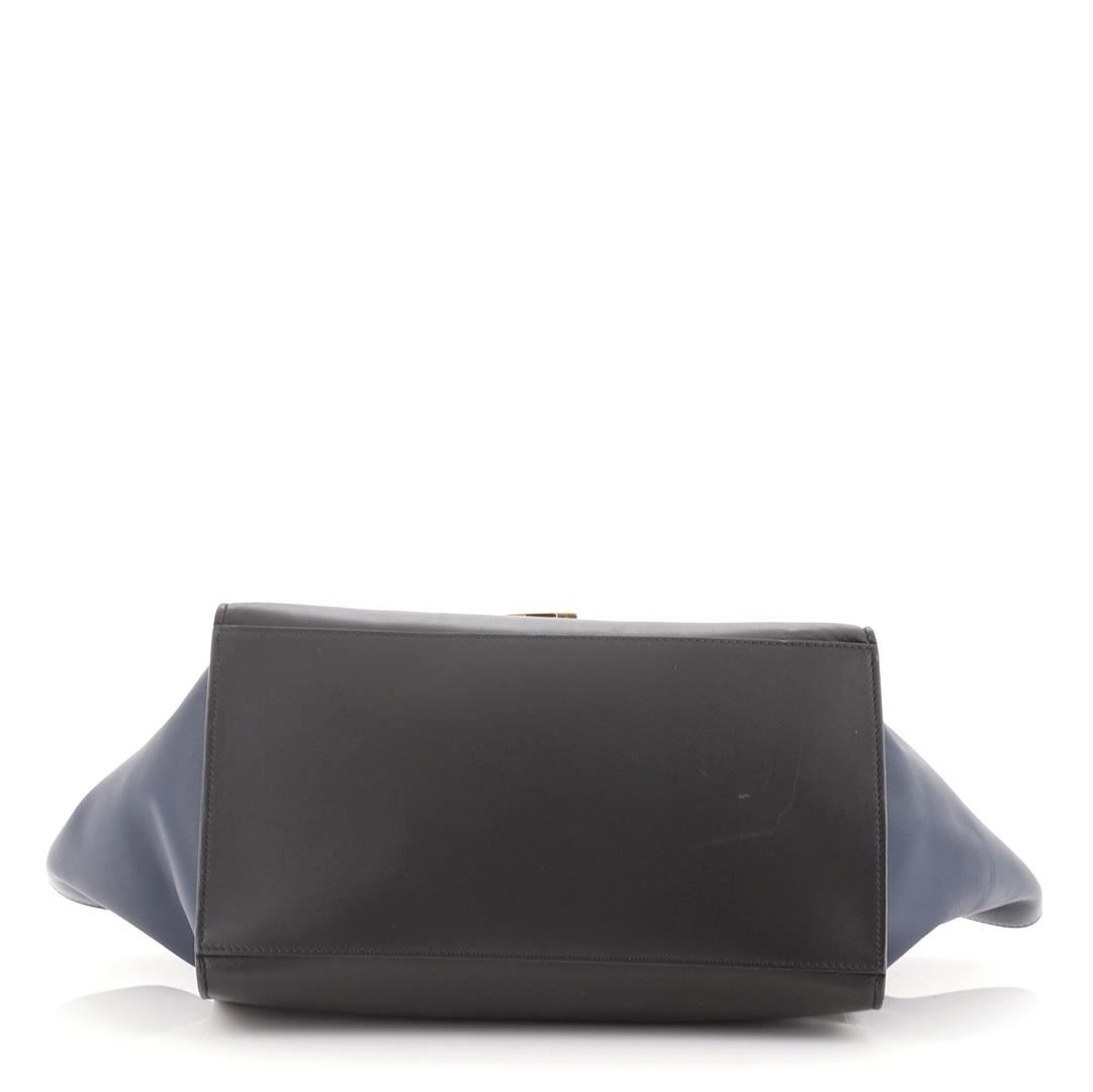 Celine Tricolor Trapeze Bag Suede Medium Neutral. All available information is listed in the description and shown in the photos. Celine Tricolor Trapeze Bag Suede Medium Beige Bluie Leather Condition Details: Moderate creasing, wear and scuffs on exterior and underneath flap, darkening on flap. Minor cracking on handle wax edges, scratches on hardware. Height 10", Width 12", Depth 6.5", Strap Drop 14