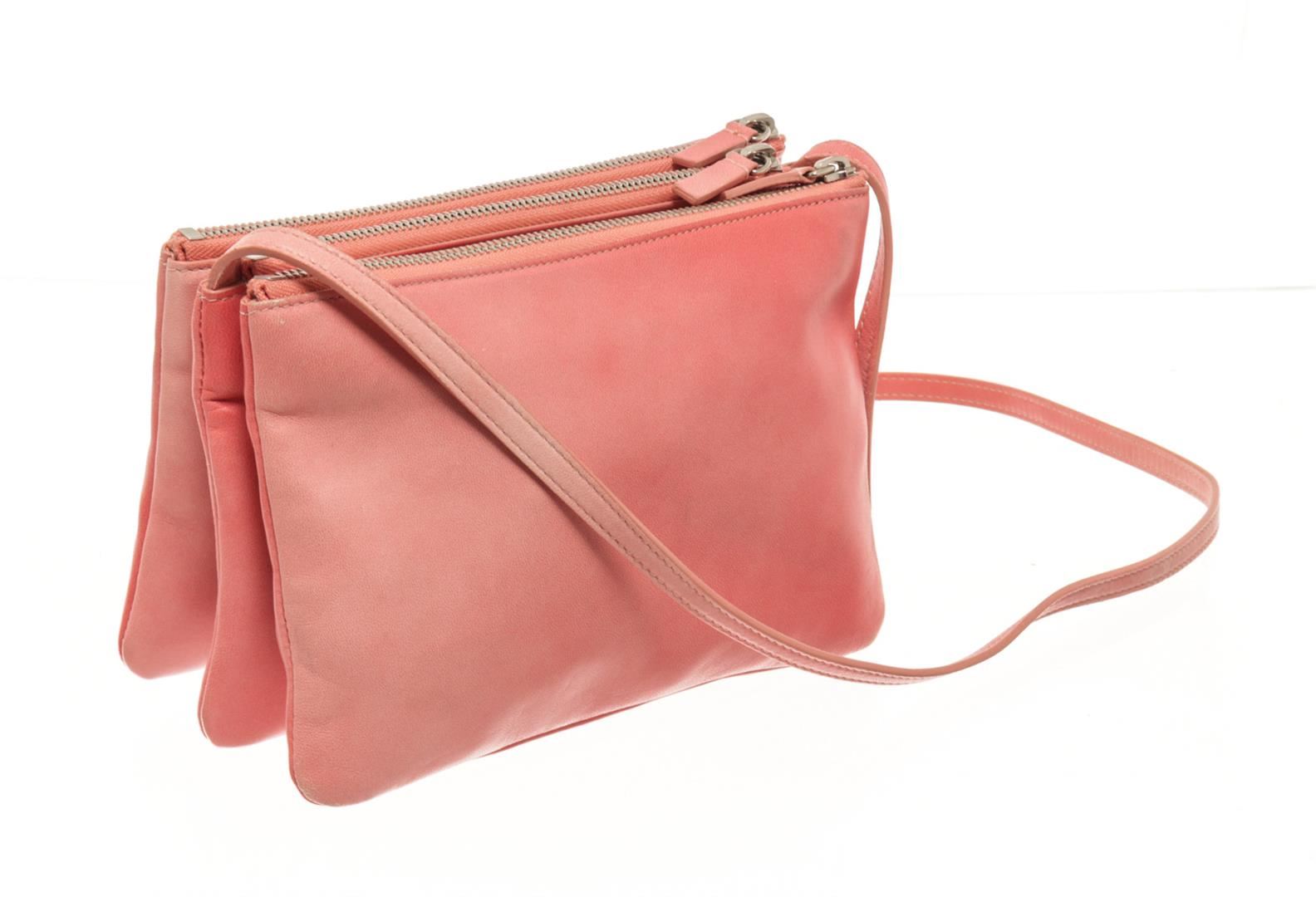 Celine Trio Ombre Leather Small Crossbody Bag. All available information is listed in the description and shown in the photos. Celine Trio Ombre Leather Small Crossbody Bag with adjustable shoulder strap, three zipper closure, silver tone hardware, jersey grey lining. Height 6", Width 8.5", Depth 2", Strap Drop 18-24" / 15.24 x 21.59 x 5.08CM