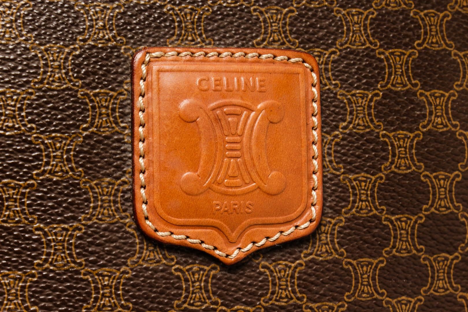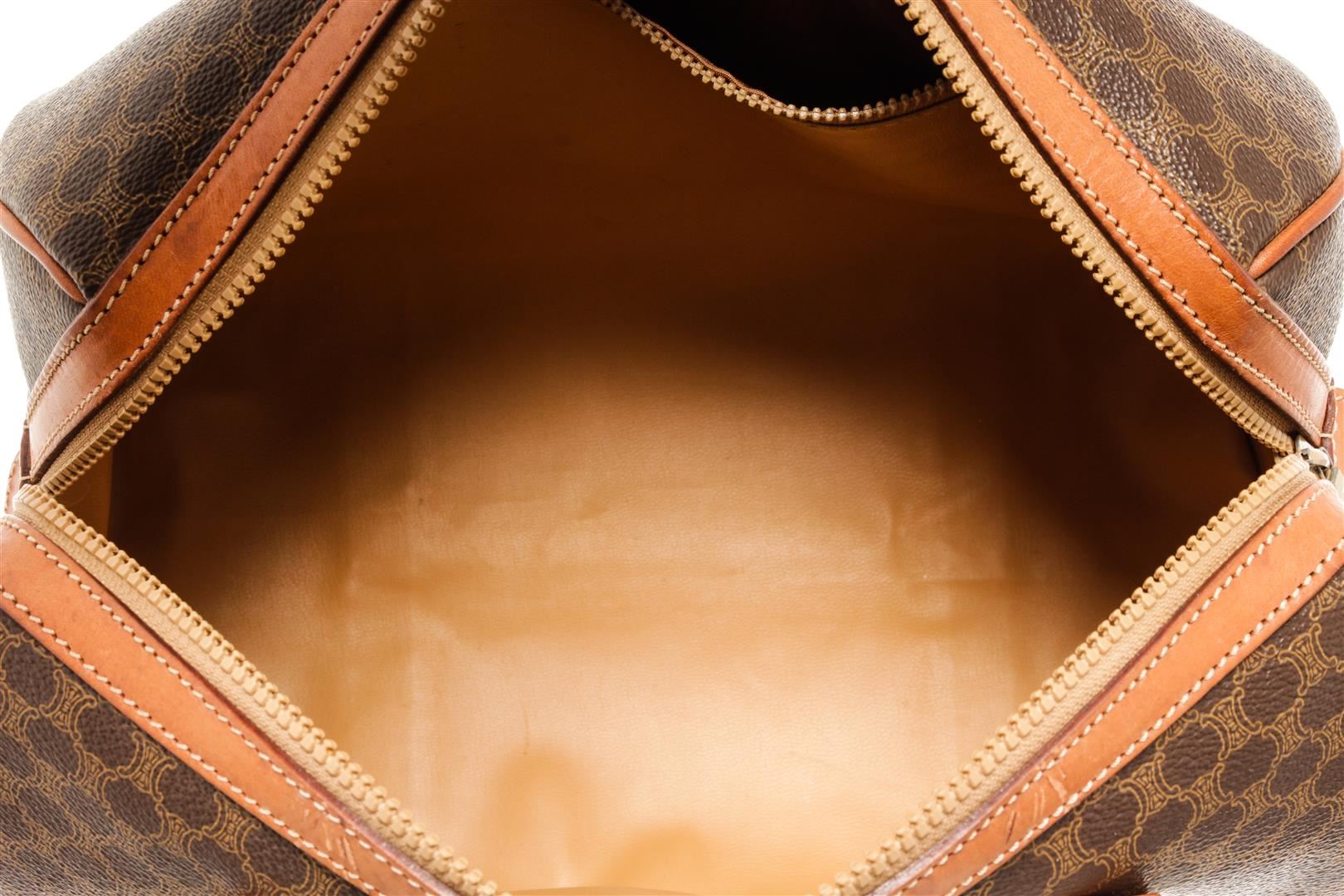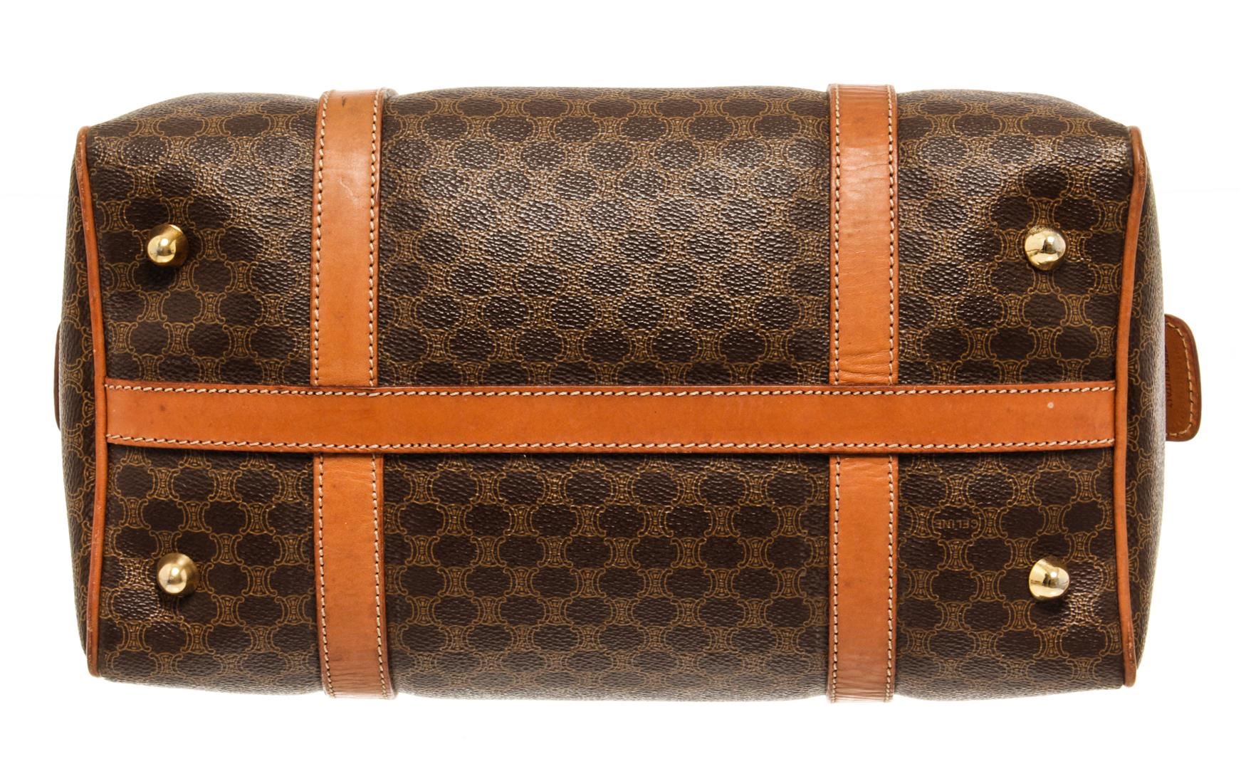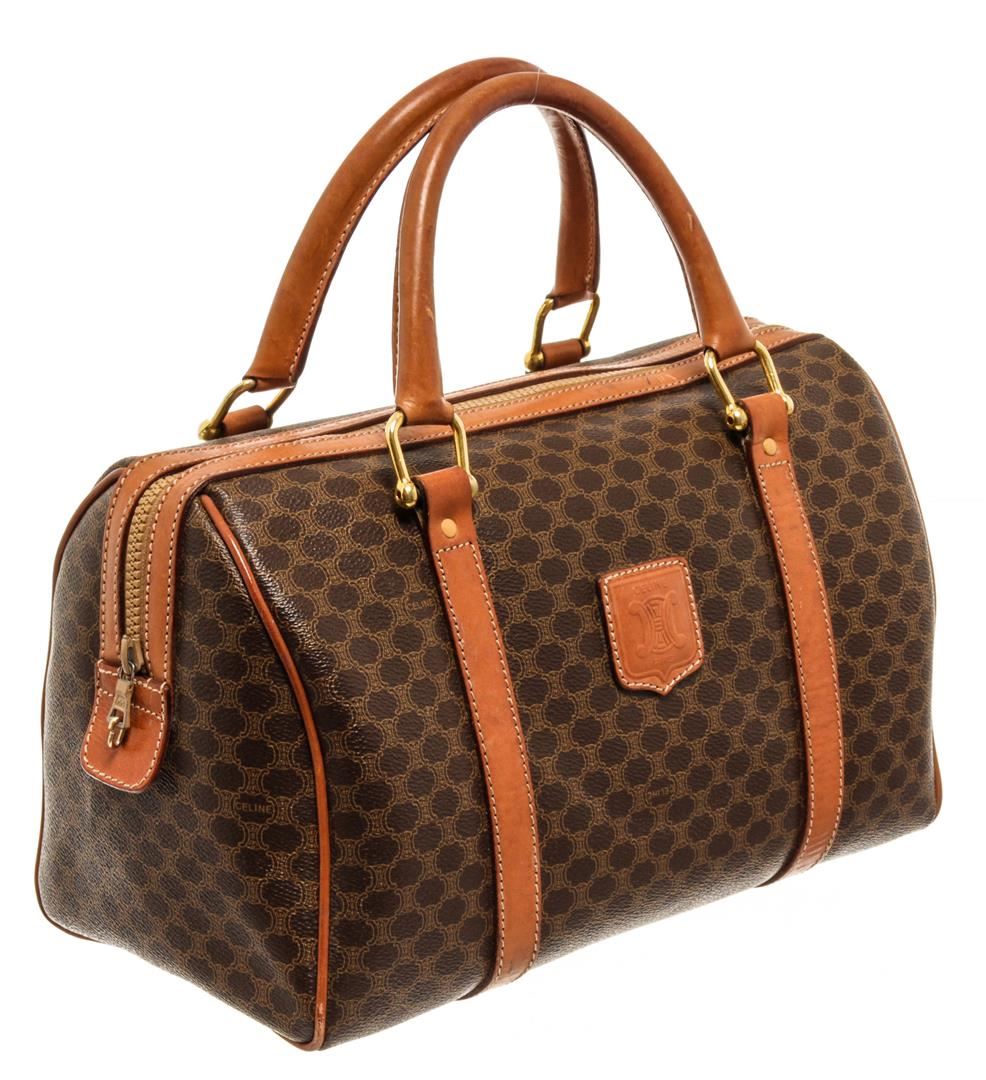 One Celine Vintage Boston Bag Macadam. Item is sold AS-IS. All available information is listed in the description and shown in the photo. Celine vintage Boston Bag Macadam with Macadam coated canvas exterior, gold-tone hardware, brown leather lining, zip closure, and top handles.