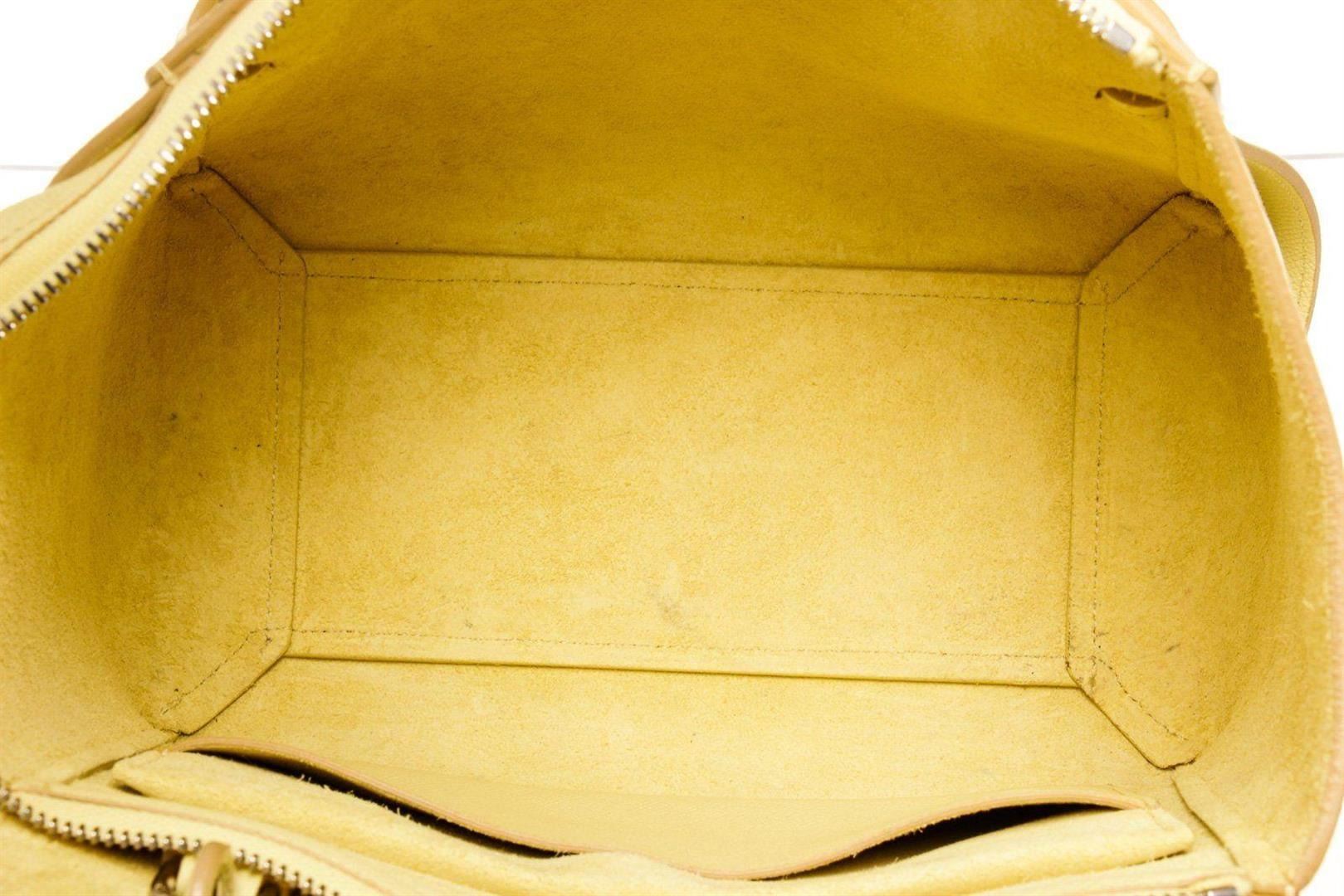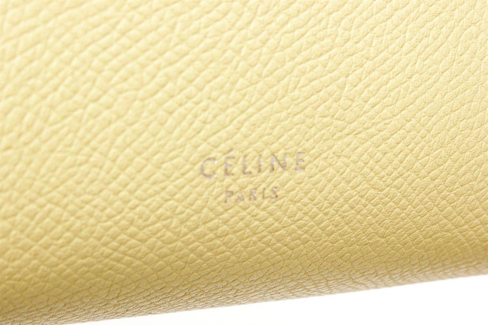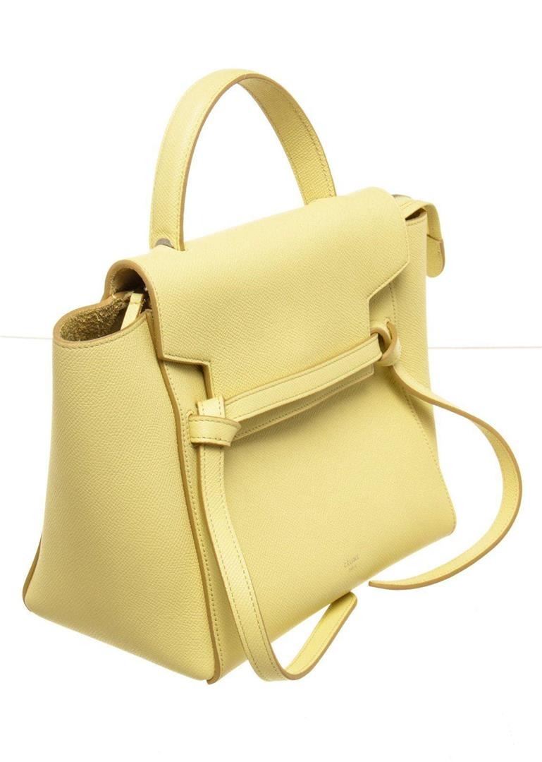 Celine Yellow Leather Micro Belt Bag Tex Shoulder Bag with leather, gold tone hardware, flat handles & single adjustable shoulder strap, flat handles & single adjustable shoulder strap, leather lining & single interior pocket, zip closure.
