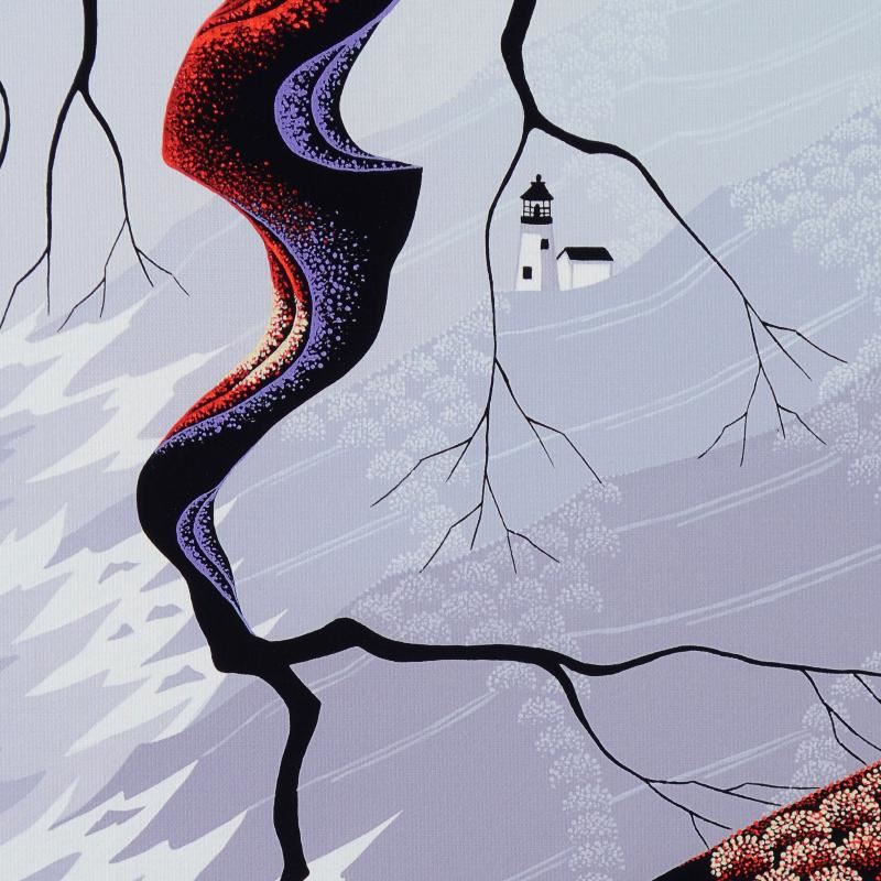 Larissa Holt, a student of distinguished artist Eyvind Earle(1916-2000), uses bold colors and breathtaking scenery to create images of Nature in her own unique style. "Central Lighthouse" is a limited edition giclee on stretched canvas by Holt, numbered and bearing Holt's authorized signature. This piece comes gallery wrapped. Includes Certificate of Authenticity! Measures approx. 10" x 12.5" x 1.5" (image).