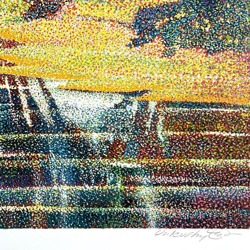 Central Park by Uzilevsky (1937-2015). "Central Park" is a limited edition serigraph on paper by Marcus Uzilevsky (1937-2015), numbered and hand signed by the artist. Includes Letter of Authenticity. Measures approx. 36" x 26" (border), 33" x 23" (image). ** Please note: There may is noticeable discoloration in the white border area. **