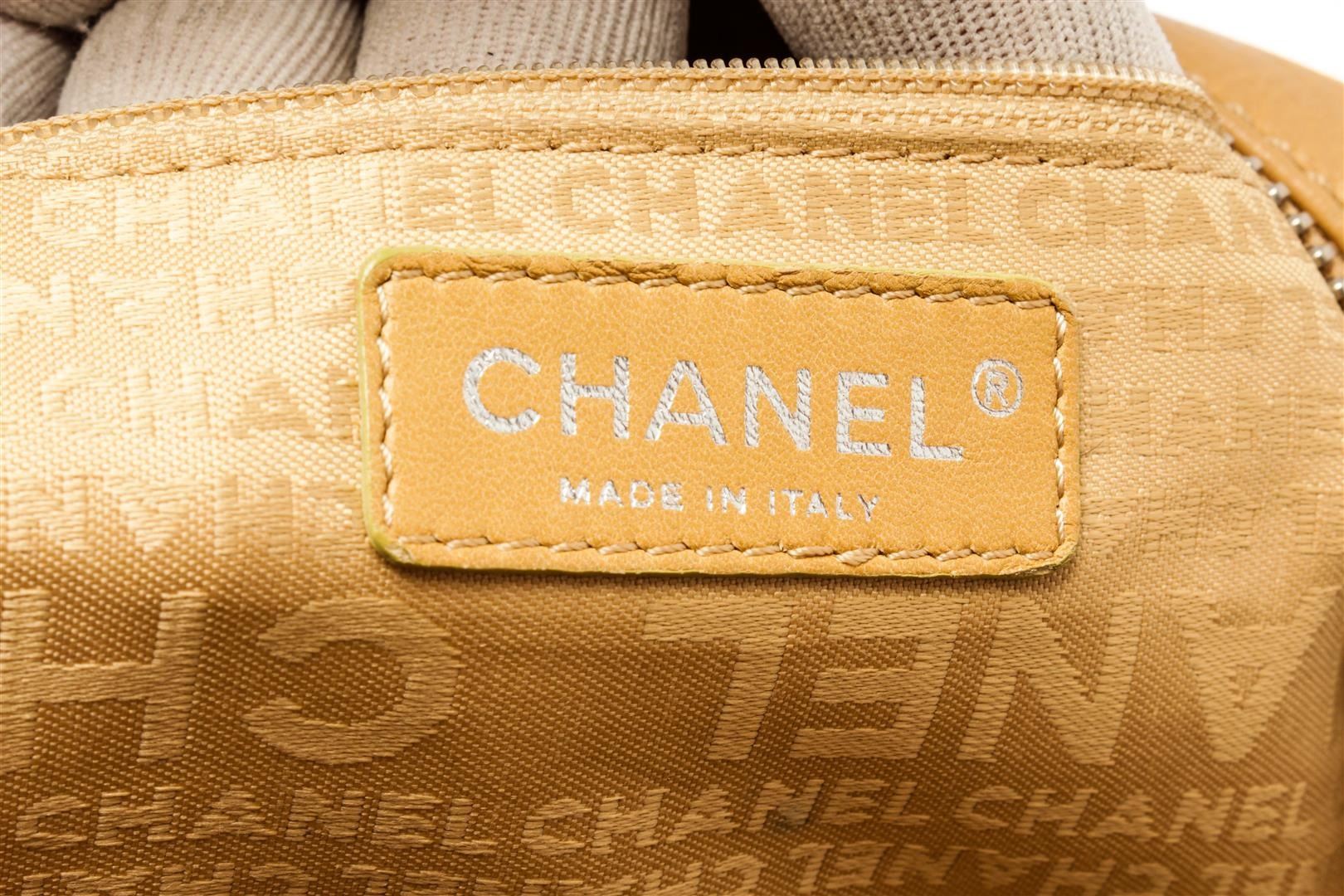 Chanel Beige Leather Deerskin Medium Shoulder Bag. All available information is listed in the description and shown in the photos. Chanel Beige Leather Deerskin Medium Shoulder Bag with beige deerskin leather top handles, fabric Chanel lining, silver tone hardware, zipper closure. There are some stains on the lining. Please refer to photos. length: 11.25 in, Height: 7 in, Width: 7.75 in / 28.57 X 17.7 X 19.68 CM