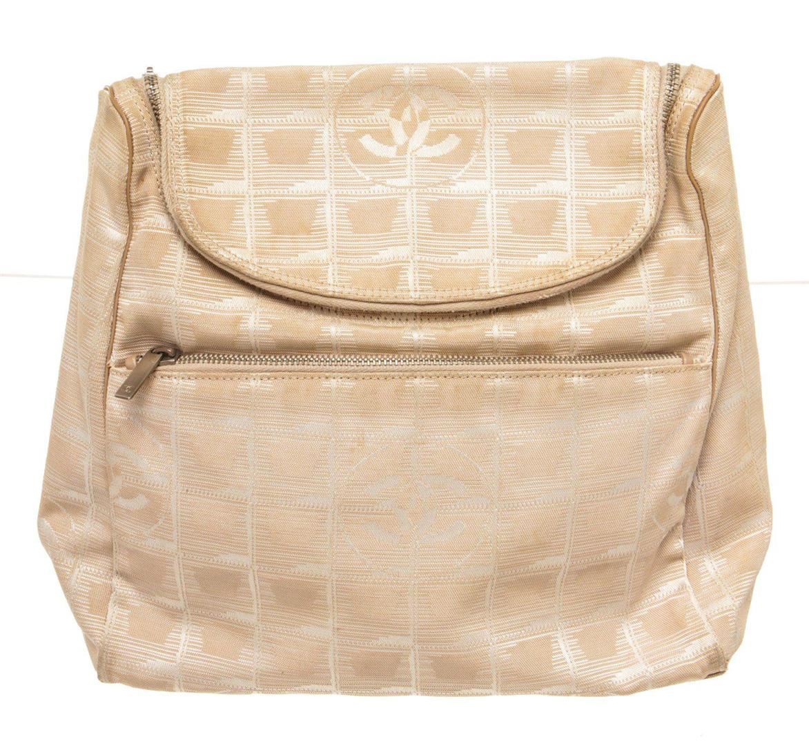 Chanel Beige White Canvas Small CC Sportlir Shoulder Bag with canvas, gold-tone hardware, exterior zip pockets, interior slip pockets, shoulder strap and zipper closure.