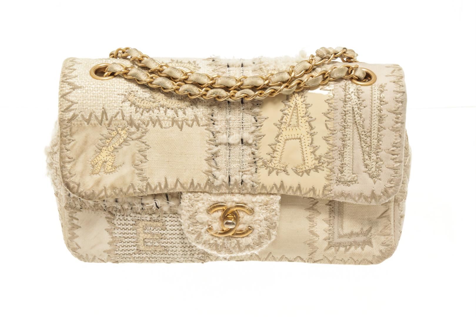 Chanel Beige White Canvas Tweed Medium Patchwork Jumbo Flap Shoulder Bag. All available information is listed in the description and shown in the photos. chanel beige white canvas tweedmedium patchwork jumbo flap shoulder bag 12"L x 3.25"W x 8"H / 30.48 x 8.25 x 20.32 CM