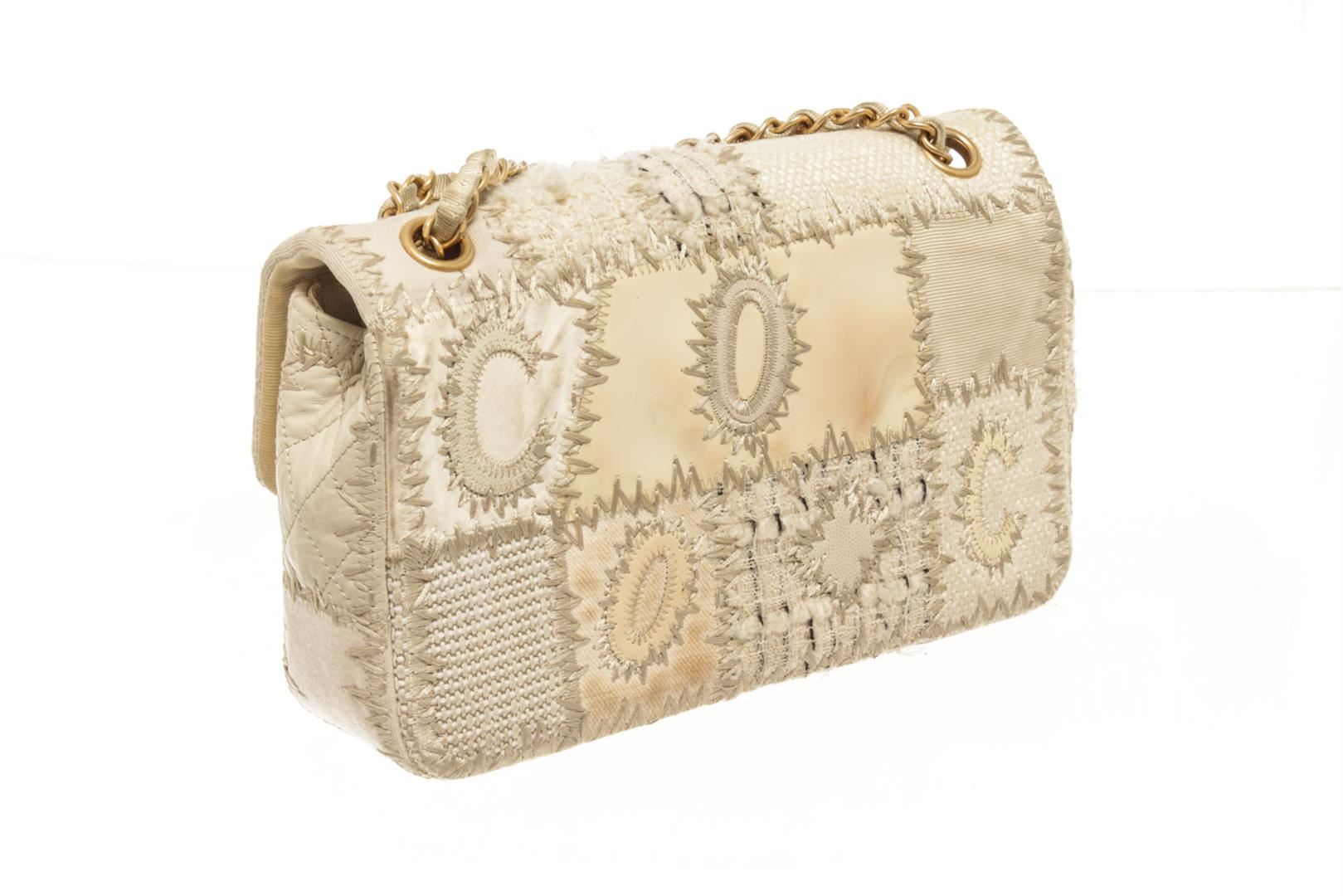 Chanel Beige White Canvas Tweed Medium Patchwork Jumbo Flap Shoulder Bag. All available information is listed in the description and shown in the photos. chanel beige white canvas tweedmedium patchwork jumbo flap shoulder bag 12"L x 3.25"W x 8"H / 30.48 x 8.25 x 20.32 CM