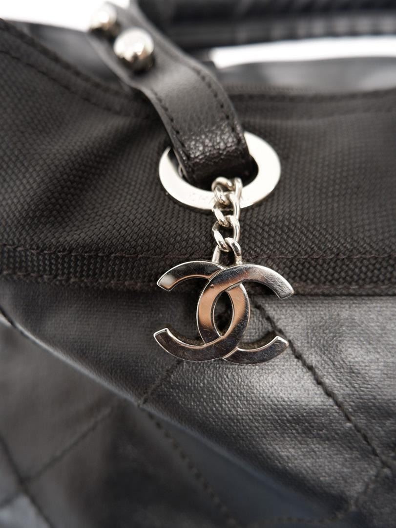 Chanel Biarritz Bag Tote. Brand: Chanel, Style: Biarritz Bag, Type: Tote, Exterior color: Black, Exterior material: Leather, Interior color: Black, Interior material: Canvas, Length: 13, Width: 6, Height: 12. Item is sold AS-IS and all information pertain