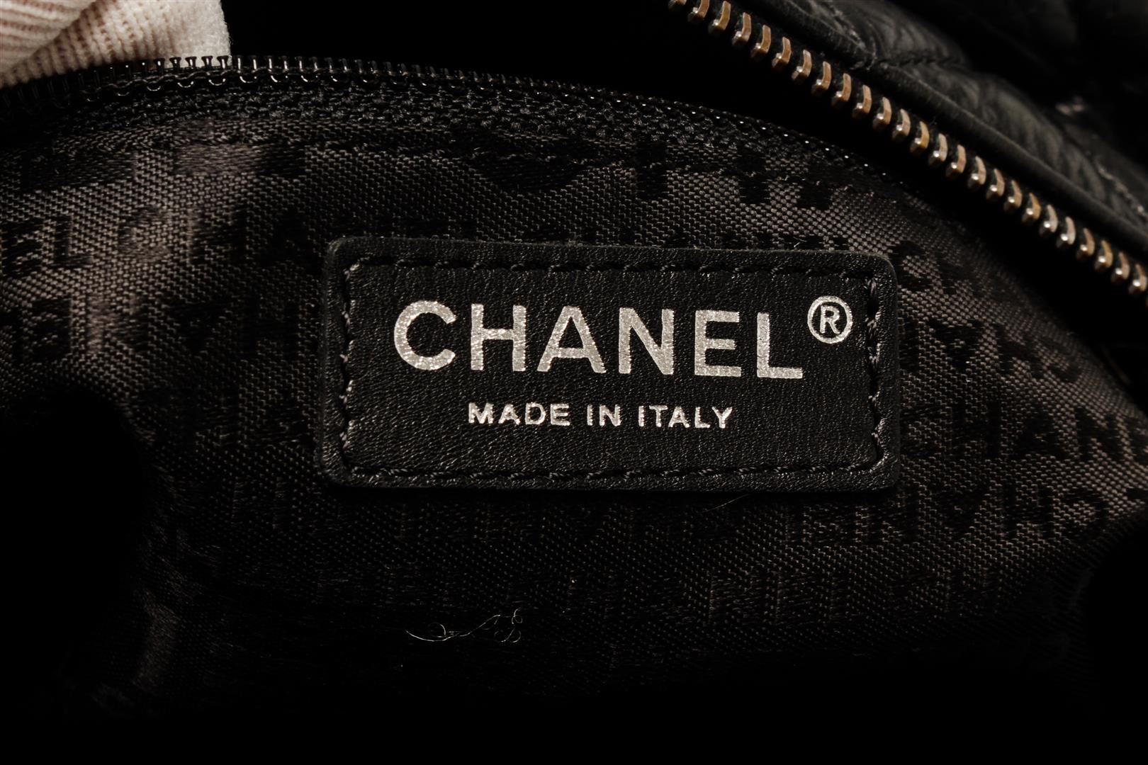 One Chanel Black 2.55 Tweed Chain Shoulder Bag. Item is sold AS-IS. All available information is listed in the description and shown in the photo. Chanel black 2.55 tweed chain shoulder bag with flower patterned black, grey, and white tweed exterior; black Chanel patterned fabric lining, adjustable strap with thin silver-toned chains and black leather shoulder pad; silver-tone hardware, zipper closure, interlocking CC logo as zipper tab, and one interior zip pocket. Height: 6 in (15.24 cm), Width: 7 in (17.78 cm), Length: 12.5 in (31.75 cm)