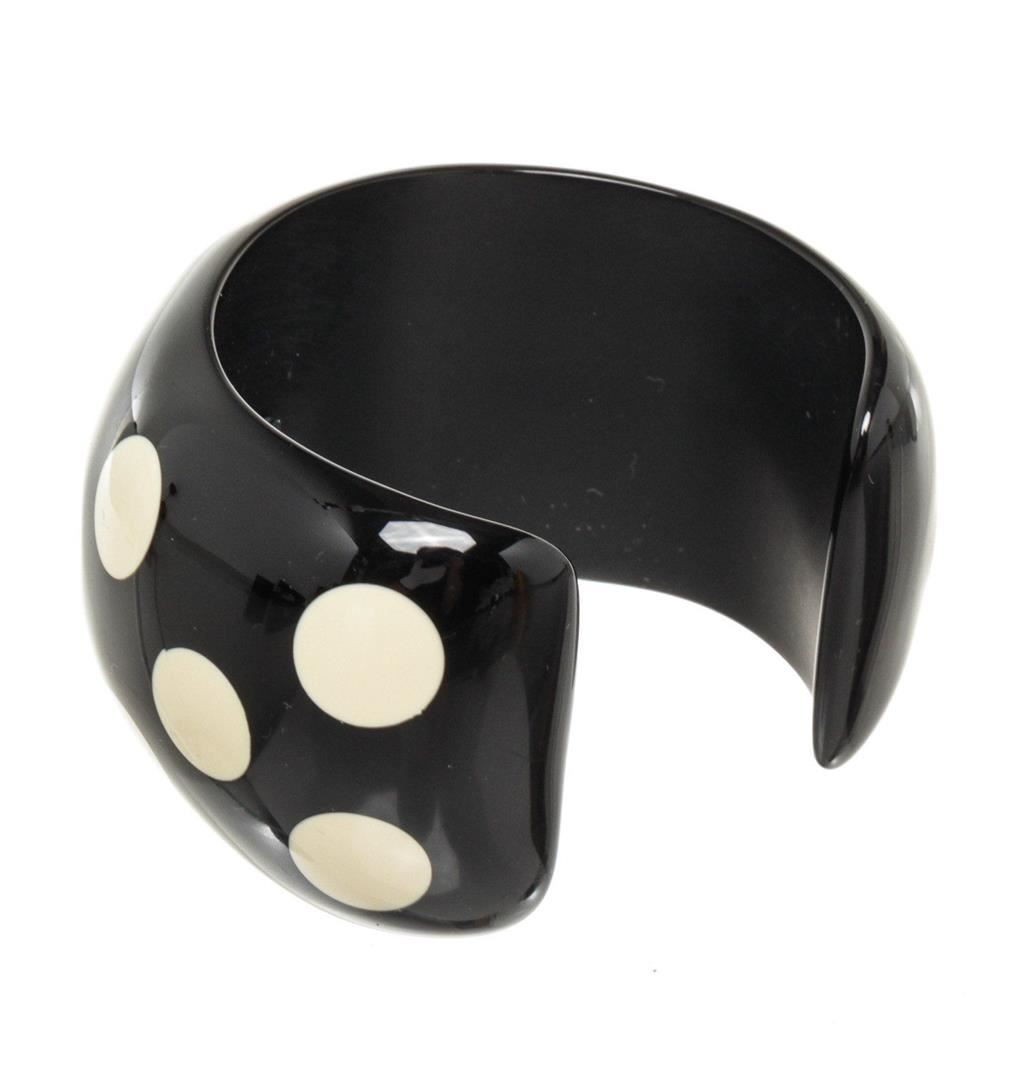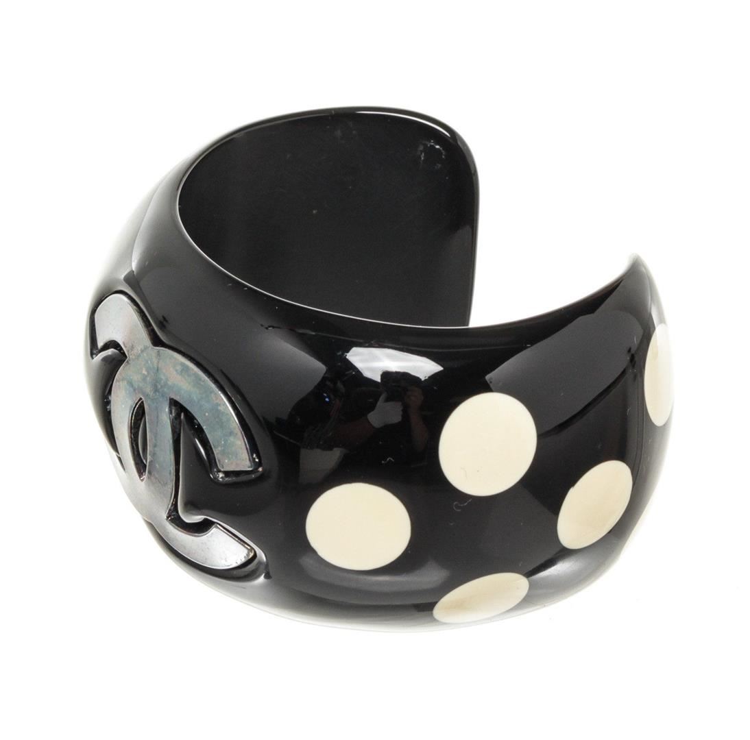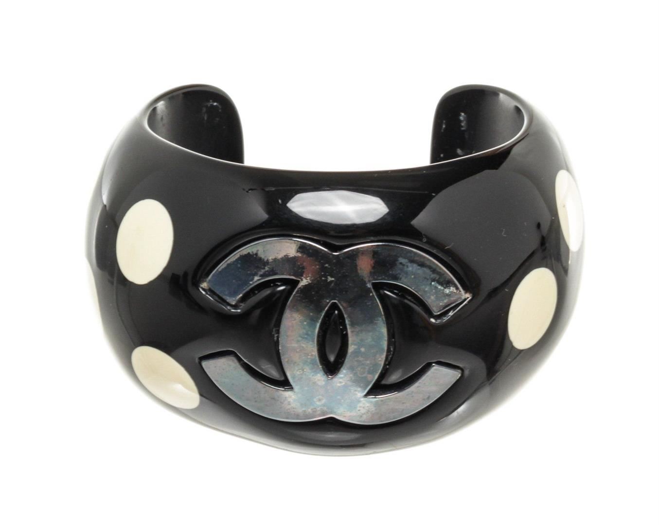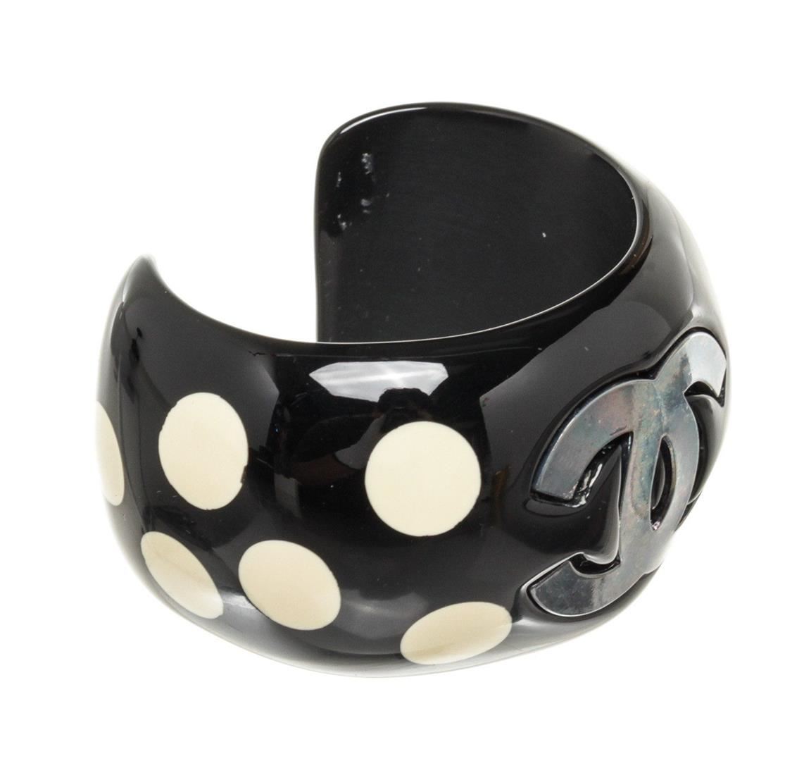 Chanel Black CC Dot Cuff with gold-tone hardware.