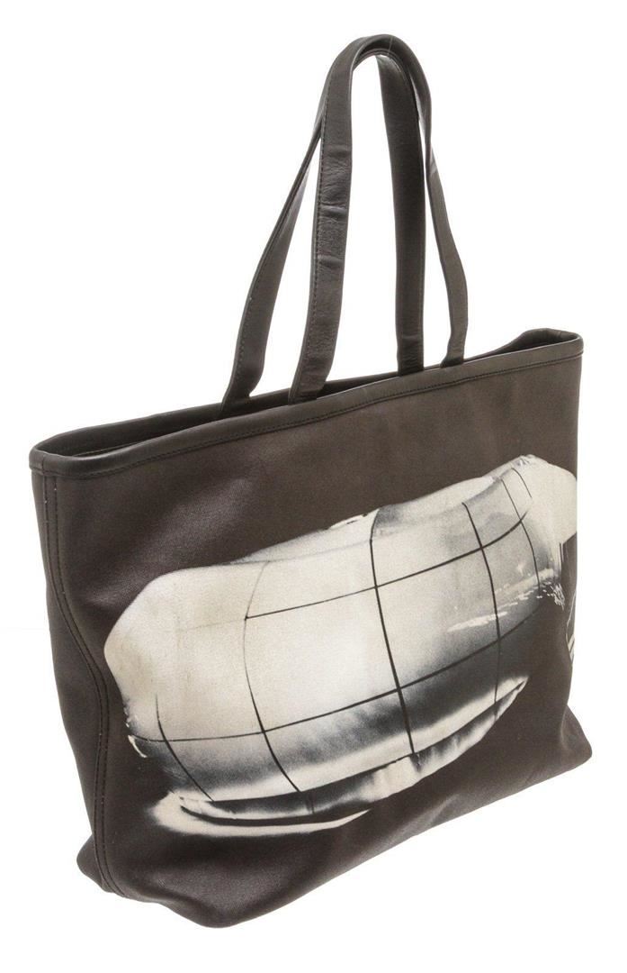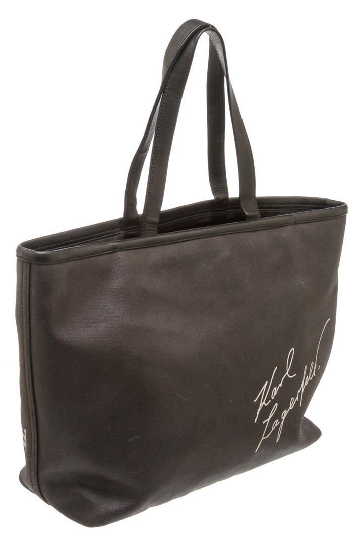 CHANEL Black Canvas Karl Lagerfeld Mobile Art Tote bag is crafted of fine black toile canvas printed with Chanel contemporary art container by Zaha Hadid. The bag features thick tall leather handles, black leather trim and an open top. The bag opens to spacious black interior featuring a zipper pocket. MEASUREMENTS: 14.25 in / 36 cm 5 in / 13 cm 11.5 in / 29 cm
