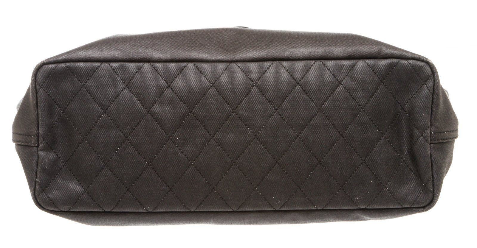 CHANEL Black Canvas Karl Lagerfeld Mobile Art Tote bag is crafted of fine black toile canvas printed with Chanel contemporary art container by Zaha Hadid. The bag features thick tall leather handles, black leather trim and an open top. The bag opens to spacious black interior featuring a zipper pocket. MEASUREMENTS: 14.25 in / 36 cm 5 in / 13 cm 11.5 in / 29 cm