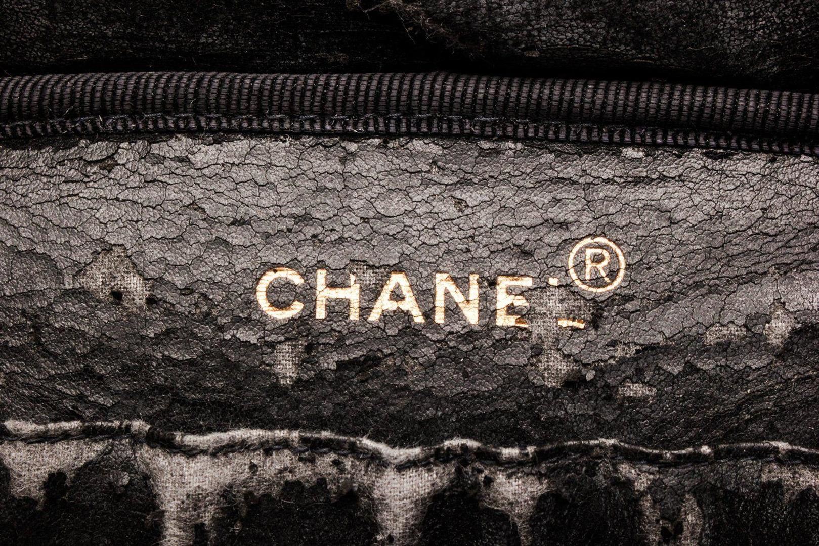 Chanel Black Caviar Leather Vanity Case Bag. All available information is listed in the description and shown in the photos. Chanel Black Caviar Leather Vanity Case Bag with caviar leather, gold-tone hardware, single flat top handle, stitched CC logo accent at front face, tonal leather lining, single elasticized slit pocket at interior wall and zip-around closure at top. 41778