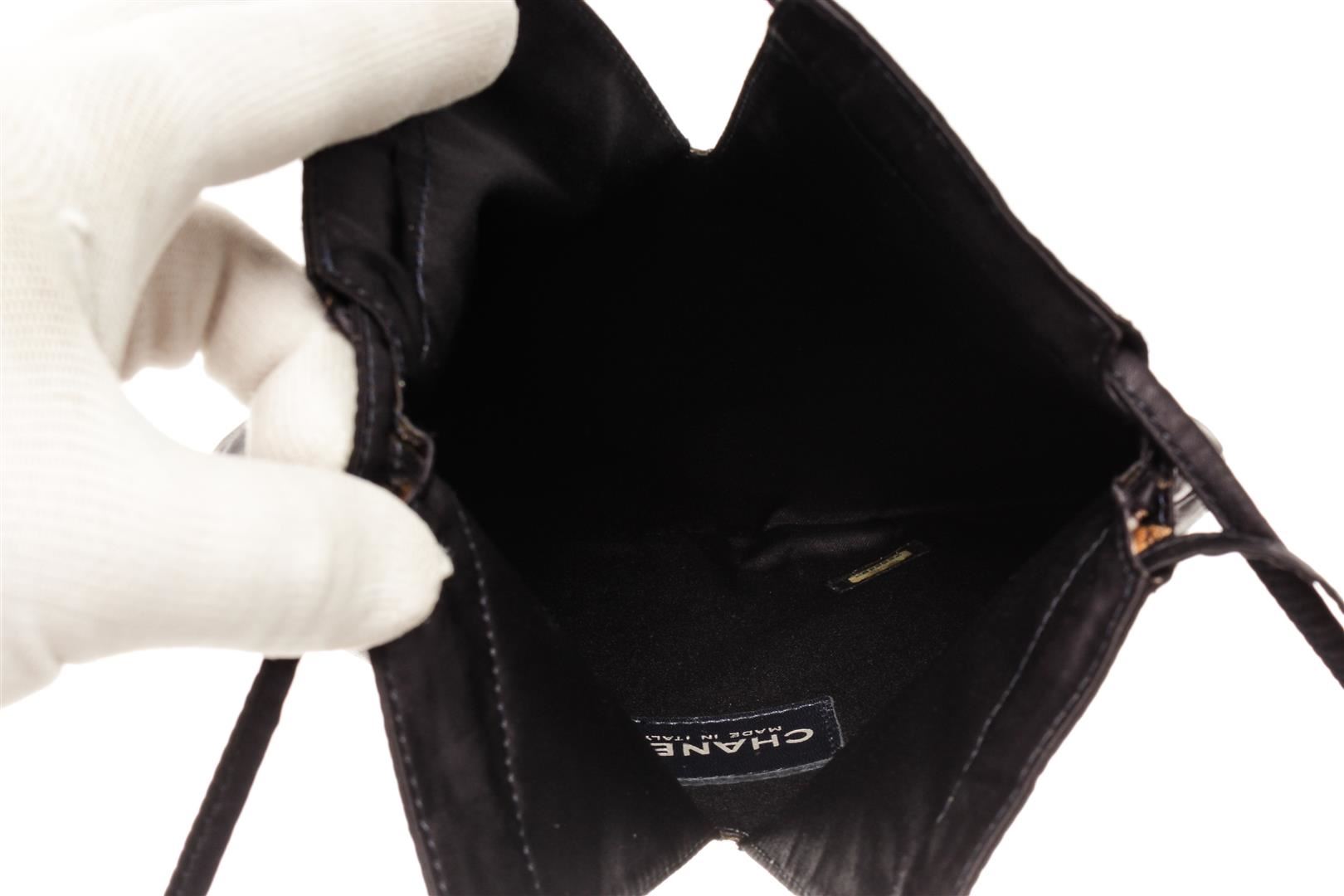 One Chanel Black Drawstring Pouch. Item is sold AS-IS. All available information is listed in the description and shown in the photo. Chanel black drawstring pouch with satin exterior and interior, one main compartment, silver-tone Chanel logo on the front, slit in the middle top, drawstring closure, and two "Chanel" patterned pendants on the end of the drawstring. Height: 9.05" Width: 6.69" Depth: 1" , Handle Drop: 17.3" / 23 x 17 x 2.54 Cm