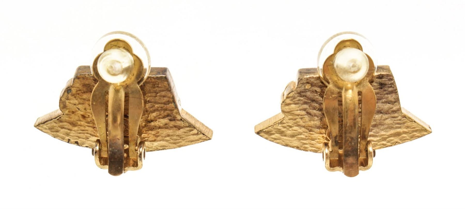 Chanel Black Gold & Pearls Metal Hat Earring. All available information is listed in the description and shown in the photos. chanel black gold & pearls metal hat earring with goldtone and black enamel earrings adorned with faux pearl's.