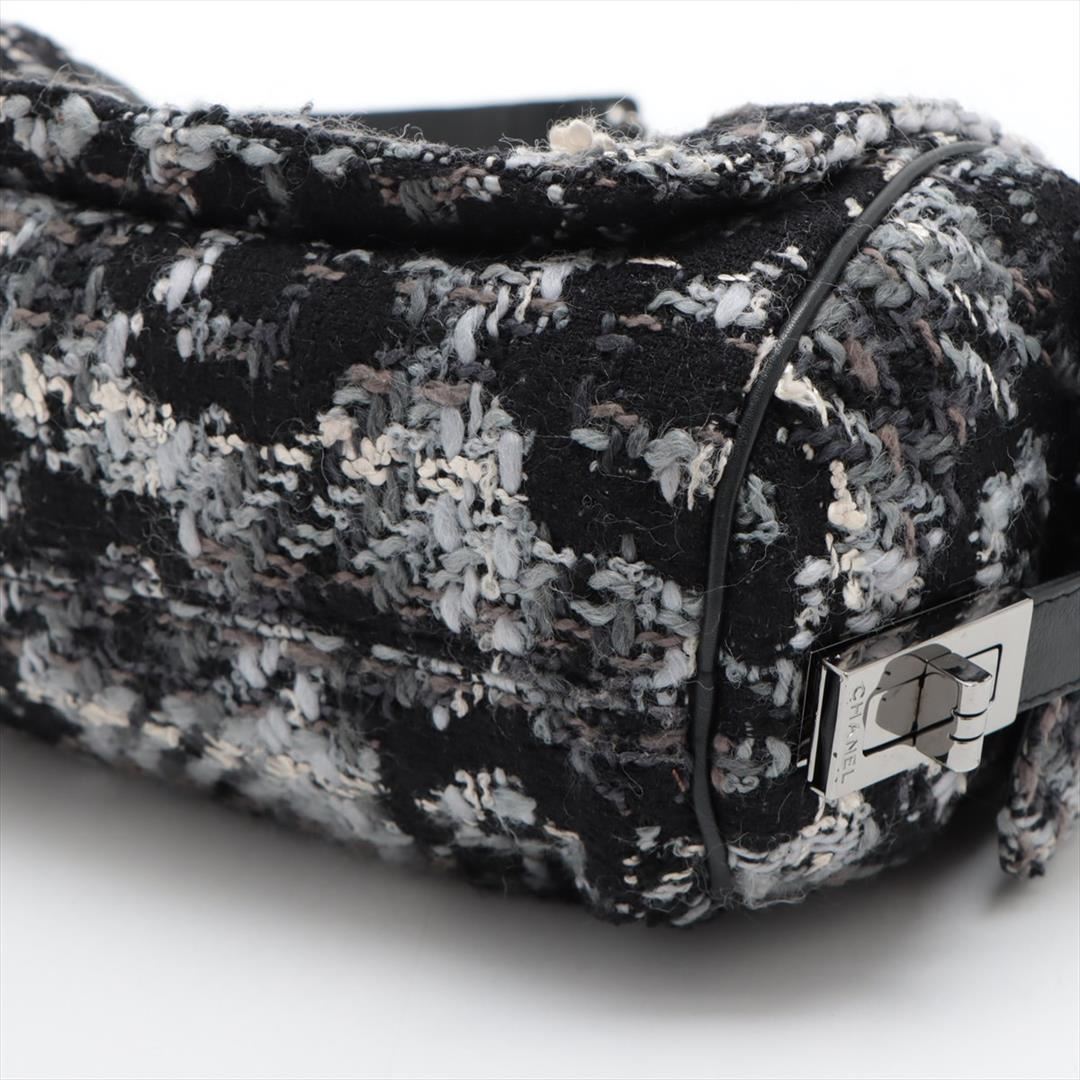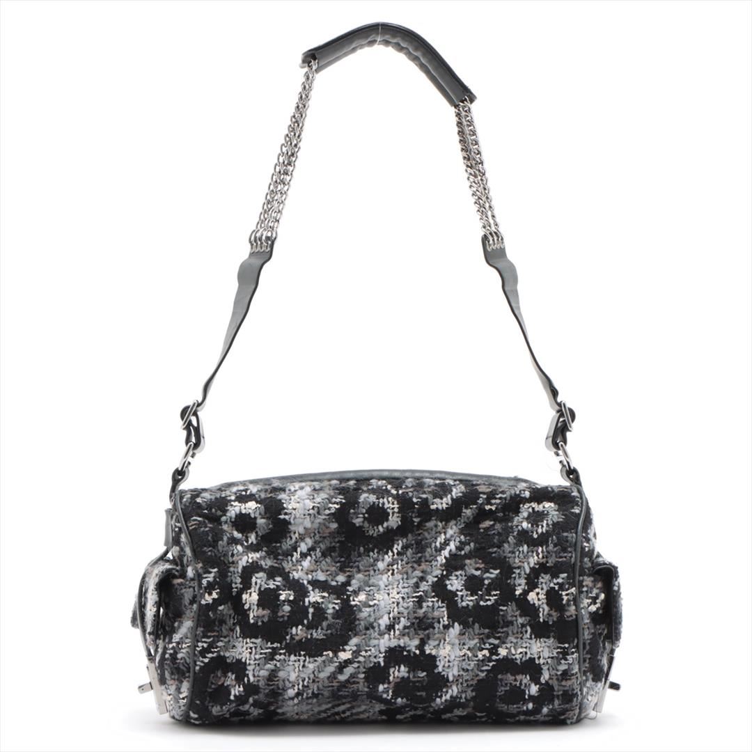 This super cool Chanel Tweed bag comes with a rock'n roll chain made out of super soft black leather and multiple thin silver-tone chains. The shoulder drop is 12. The pattern of the Tweed shows flowers and the zipper has the double CC logo. Also it has t