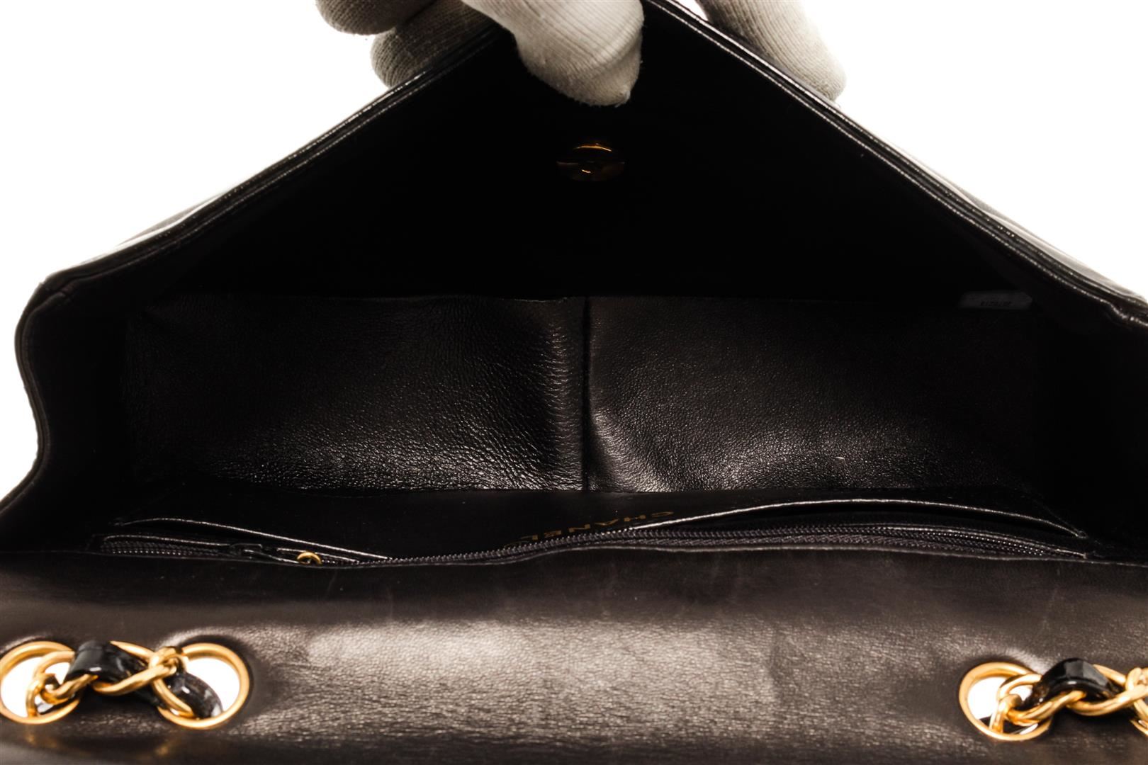 Chanel Black Horizontal Patent Leather Flap Bag. All available information is listed in the description and shown in the photos. Chanel Black Horizontal Patent Leather Flap Bag with gold-tone hardware, exterior slip pocket at the back, black leather lining, interior zip pocket, chain leather shoulder strap, and flap closure with CC turn lock. .