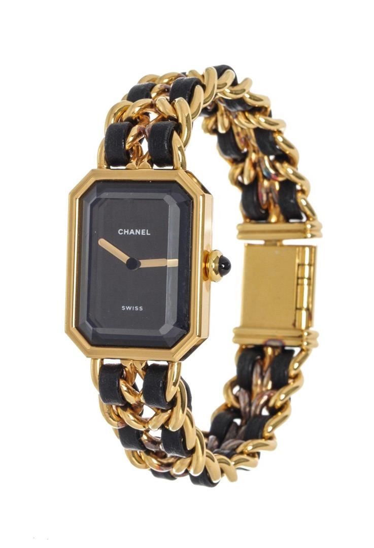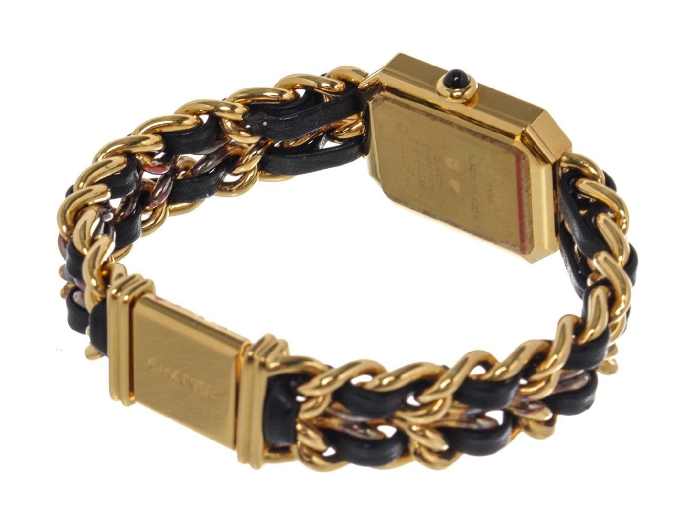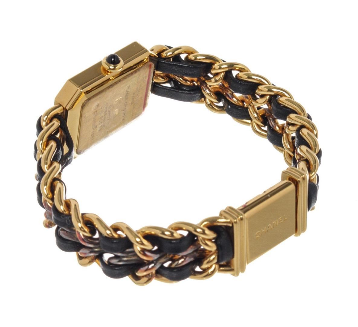 Chanel Black Ladies Leather Premiere M Watch with gold-tone hardware.