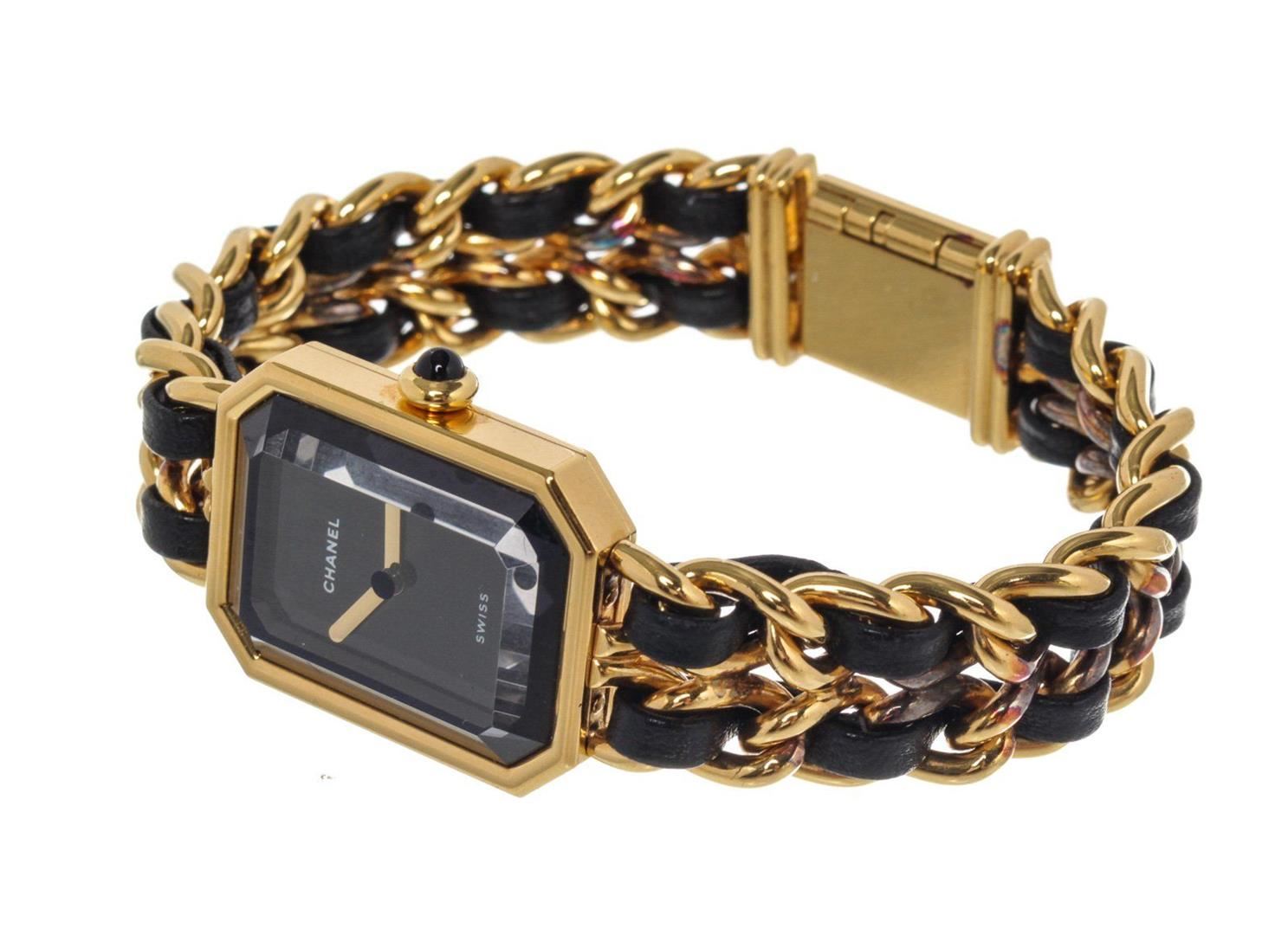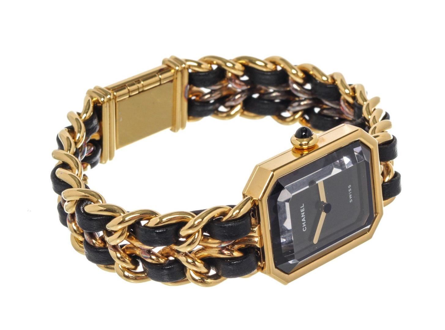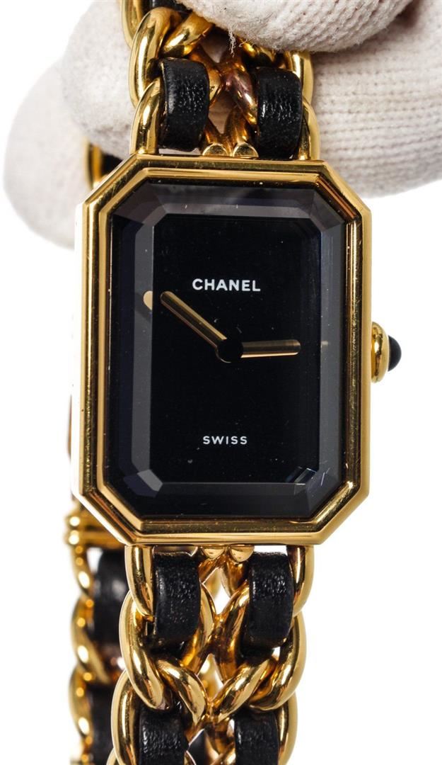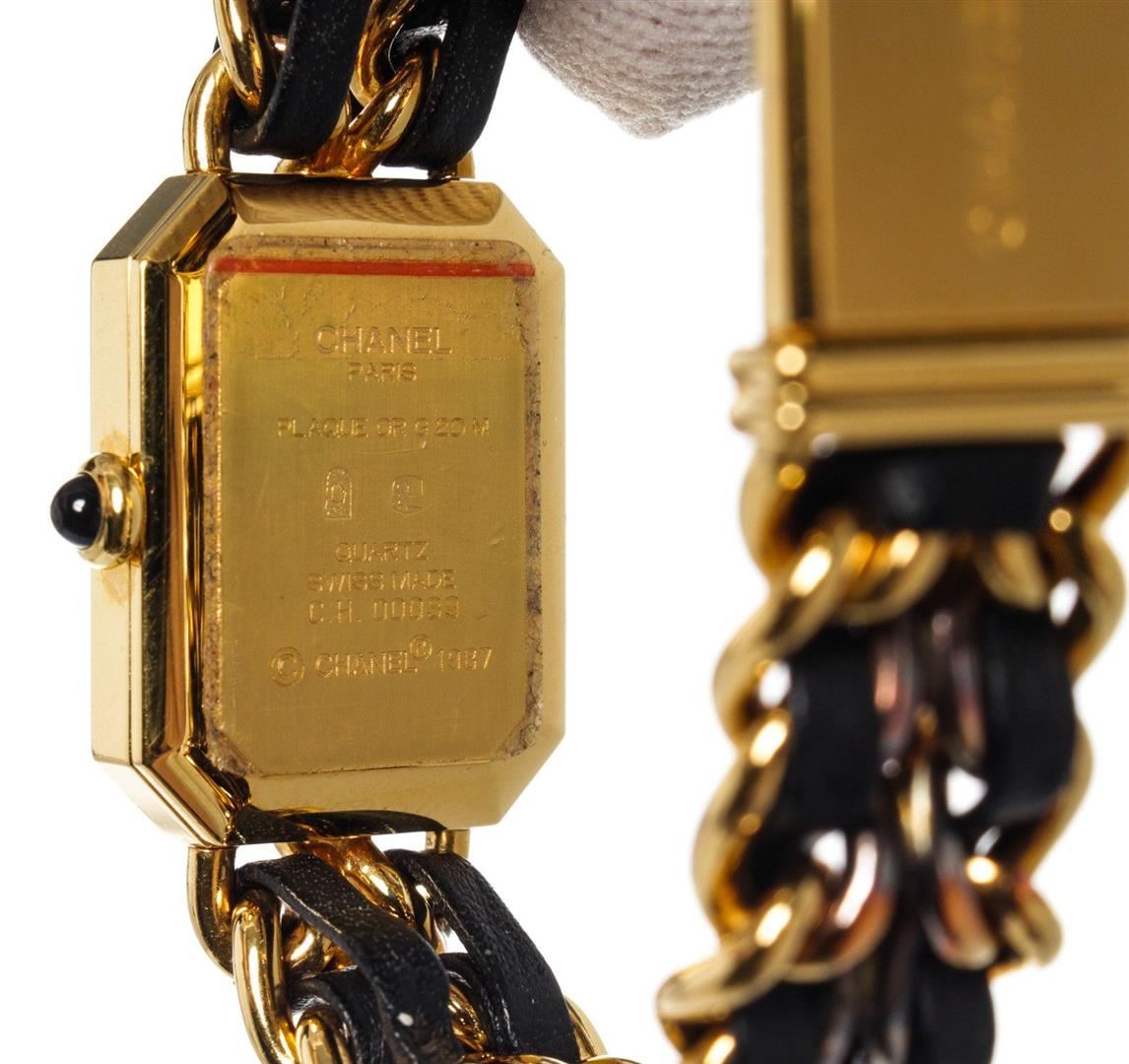 Chanel Black Ladies Leather Premiere M Watch with gold-tone hardware.