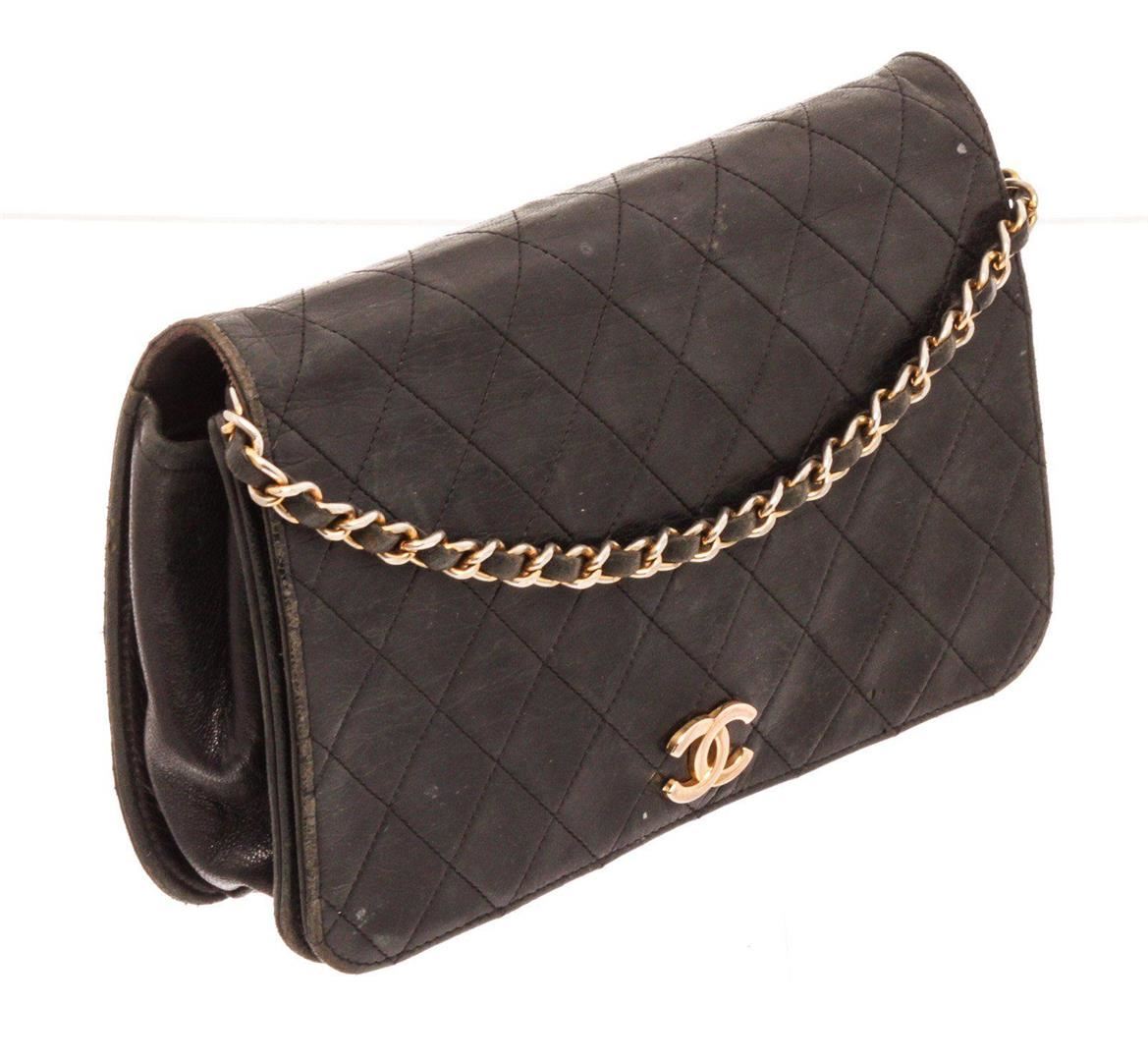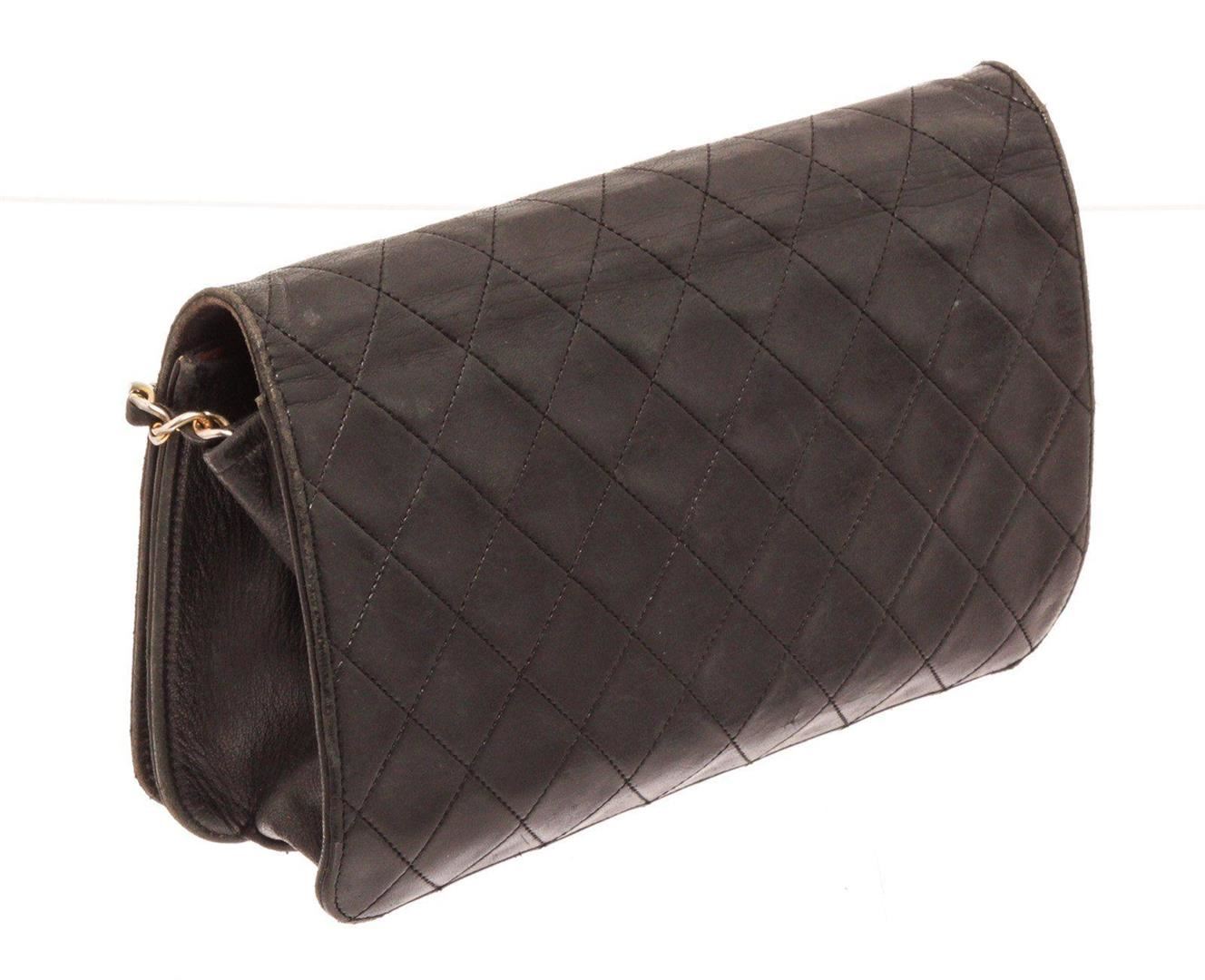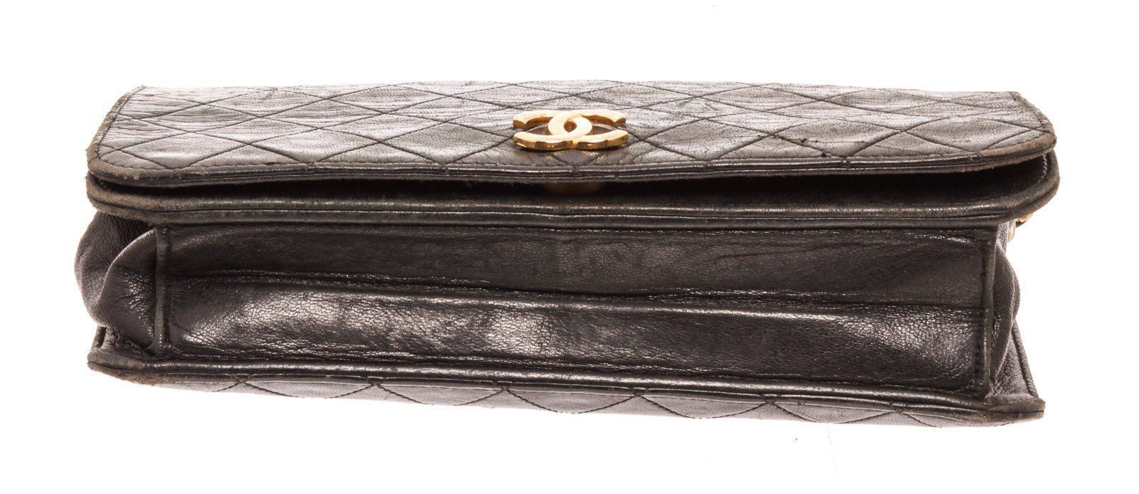 Chanel Black Lambskin Flap Shoulder Bag with material leather, gold-tone hardware, interior zip pockets, chain shoulder strap and flap closure. MEASUREMENTS: Length 7.5 in / 19 cm Width 11.5 in / 29 cm Height 2.25 in / 6 cm Condition: Pre-Owned Good overall, please see photographs for detail.