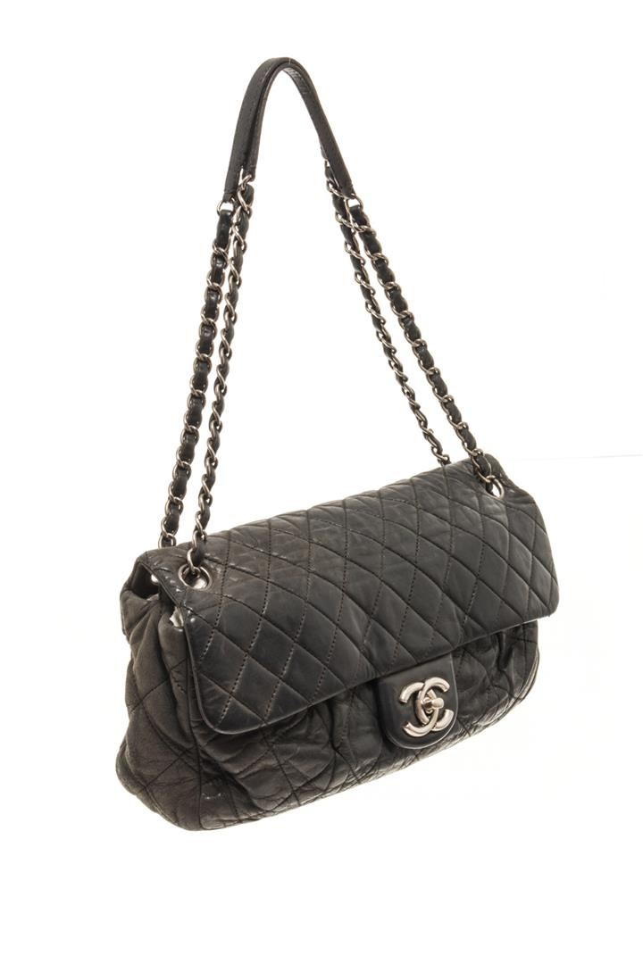 One Chanel Black Leather Accordian Flap Bag. Item is sold AS-IS. All available information is listed in the description and shown in the photo. Chanel Black Leather Accordian Flap Bag