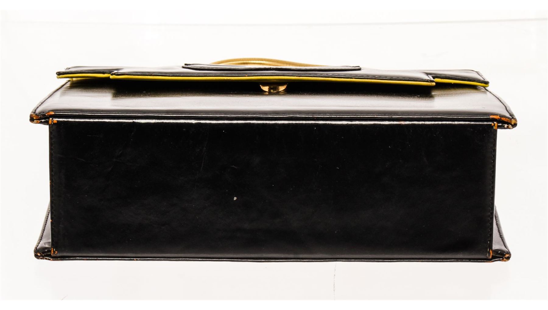 Chanel Black Leather CC Shoulder Bag. All available information is listed in the description and shown in the photos. Chanel Black Leather CC Shoulder Bag with double gold snake chain, gold-tone hardware, heavy gold chain straps, structured patent body with lambskin cc logo and leather lined interior, non-adjustable strap drop, magnetic clasp closure. Height: 10" Width: 8" Depth: 3.25", Drop: 12" / 25.4 x 20.32 x 8.25 cm