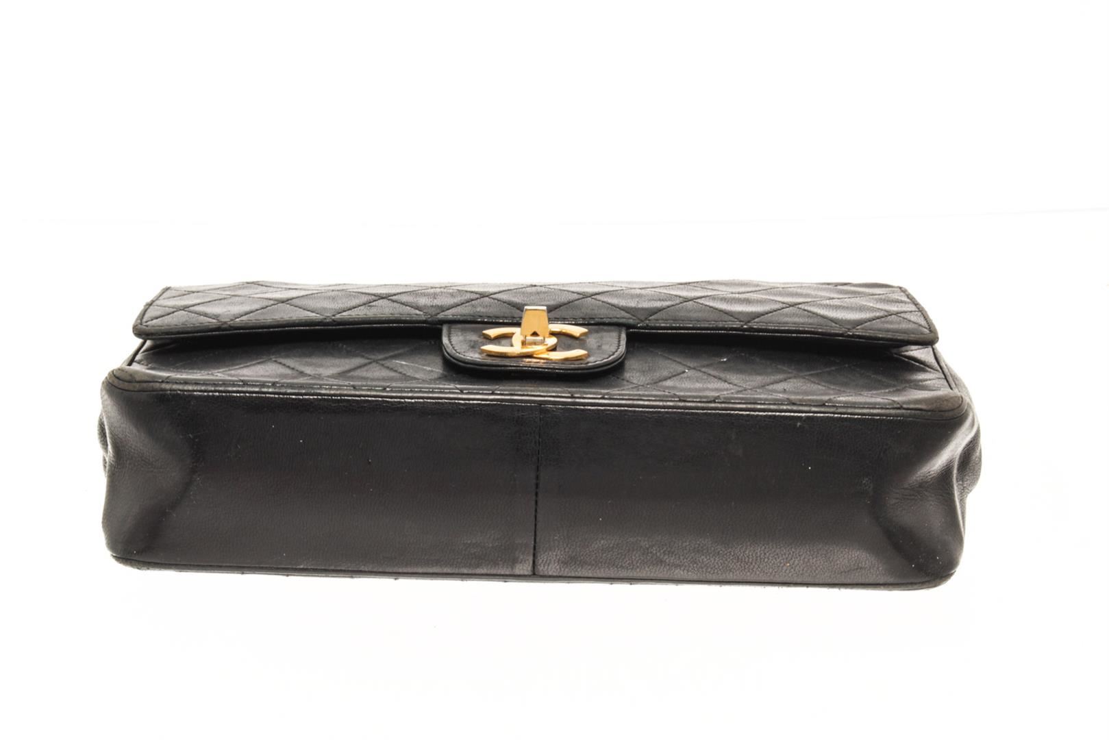 One Chanel Black Leather Chain Double Flap Shoulder Bag. Item is sold AS-IS. All available information is listed in the description and shown in the photo. chanel black leather chain double flap shoulder bag with leather, gold-tone hardware, interior slip pocket, chain shoulder strap and snap closure. Height: 7" Width: 2" Depth: 10", Handle Drop: / 17.78 x 5.08 x 25.4 Cm