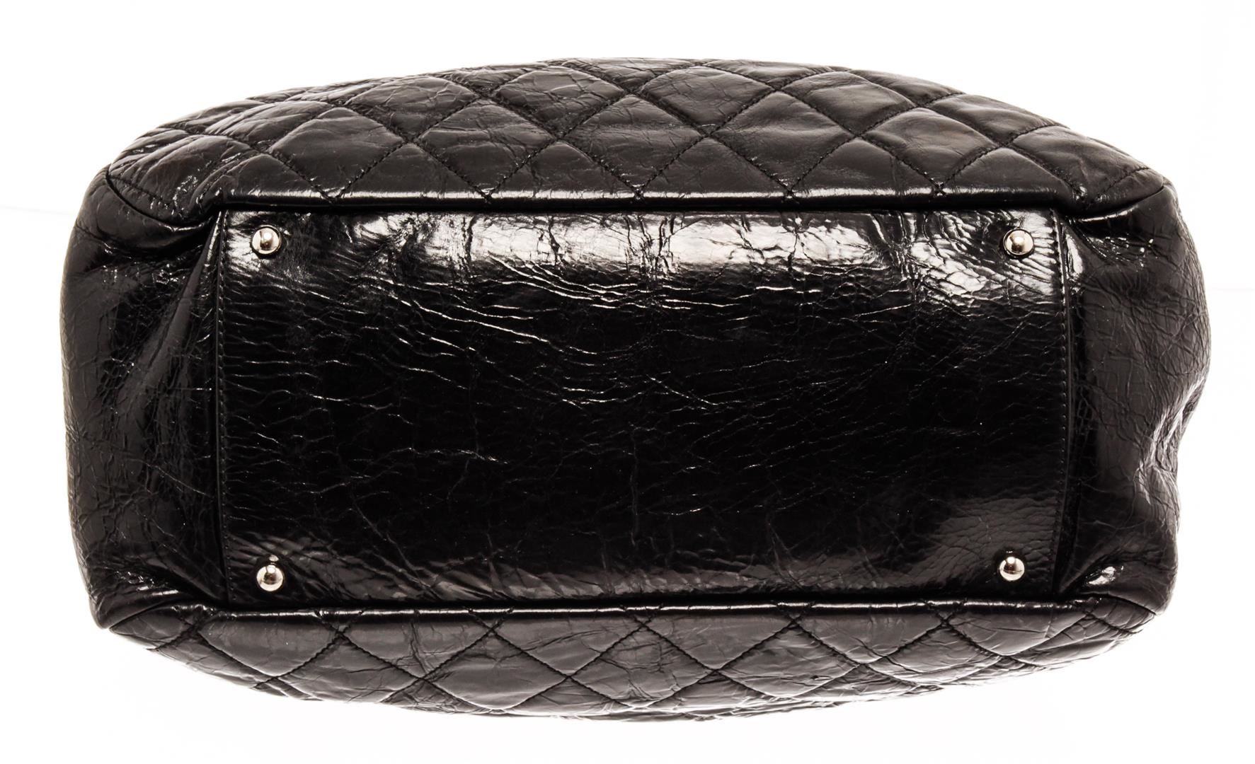 Chanel Black Leather Chain Tote Bag. All available information is listed in the description and shown in the photos. chanel black leather chain tote bag with gold-tone hardware, chain-link shoulder strap, full lining, top zip fastening. Height: 20.32 cm (8 in), Width: 19.05 cm (7.5 in), Depth: 3.81 cm (1.5 in)