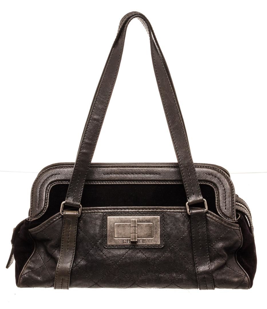 One Chanel Black Leather Mademoiselle Shoulder Bag. Item is sold AS-IS. All available information is listed in the description and shown in the photo. Chanel Black Leather Mademoiselle Shoulder Bag with leather, gold-tone hardware, trim leather, interior zip pocket, shoulder strap and zipper closure.