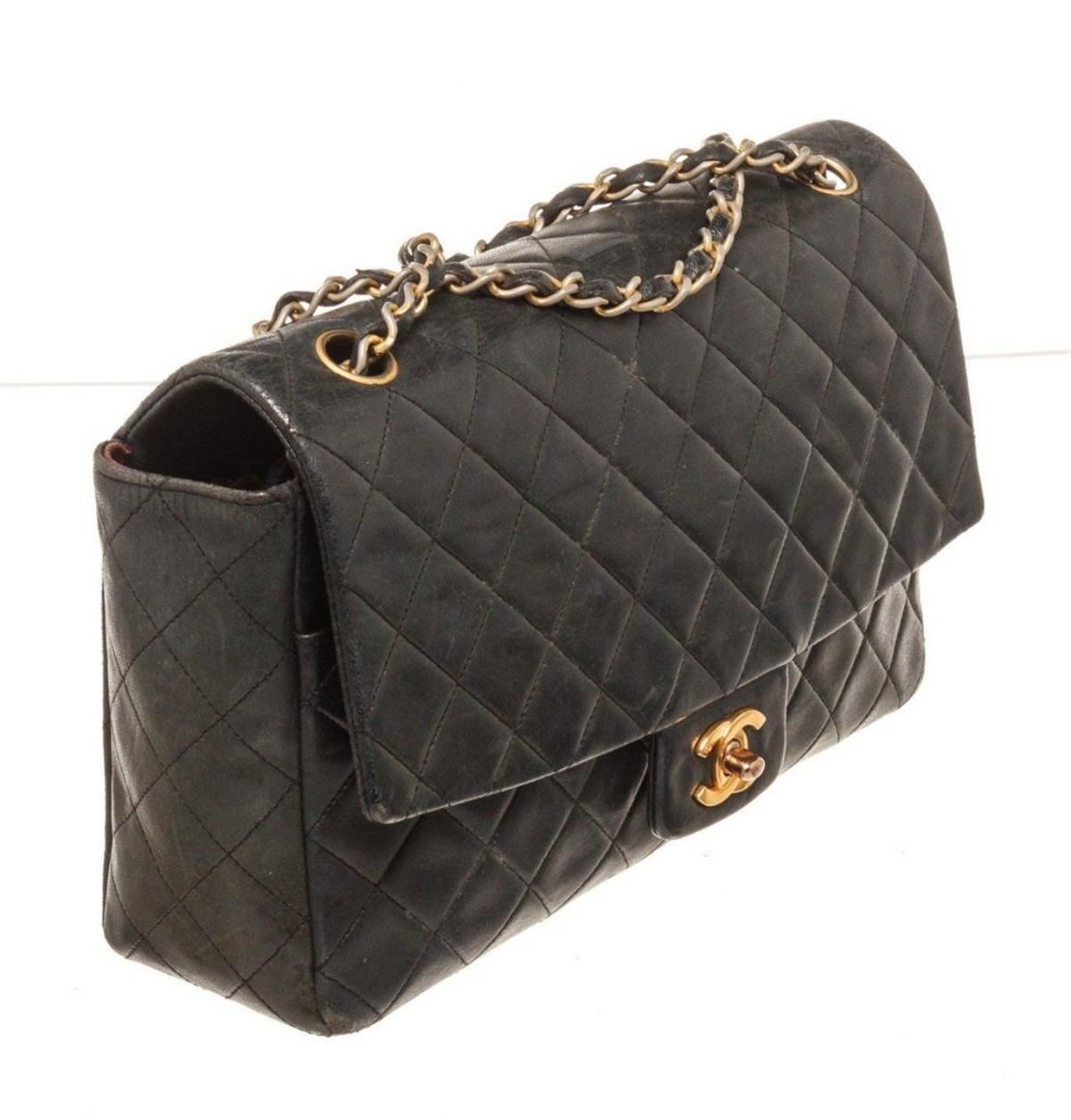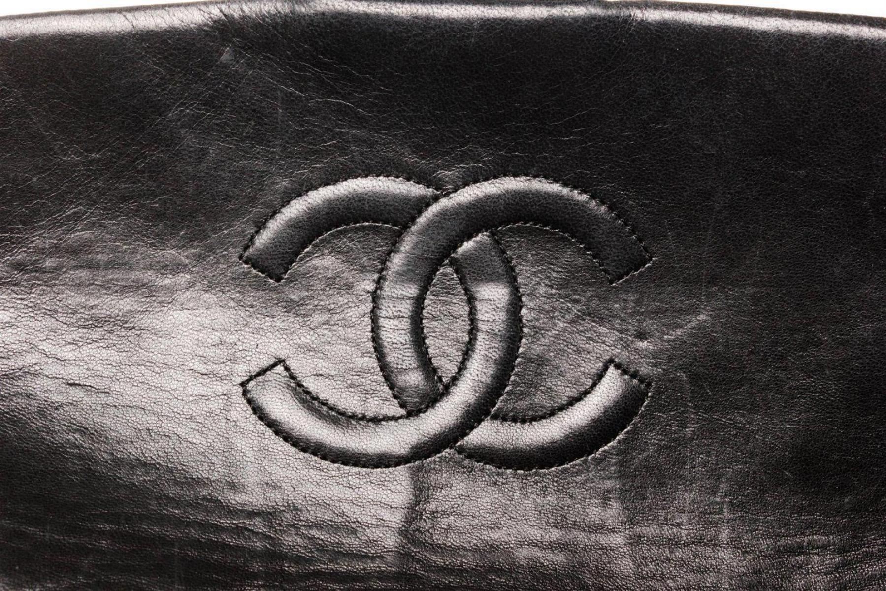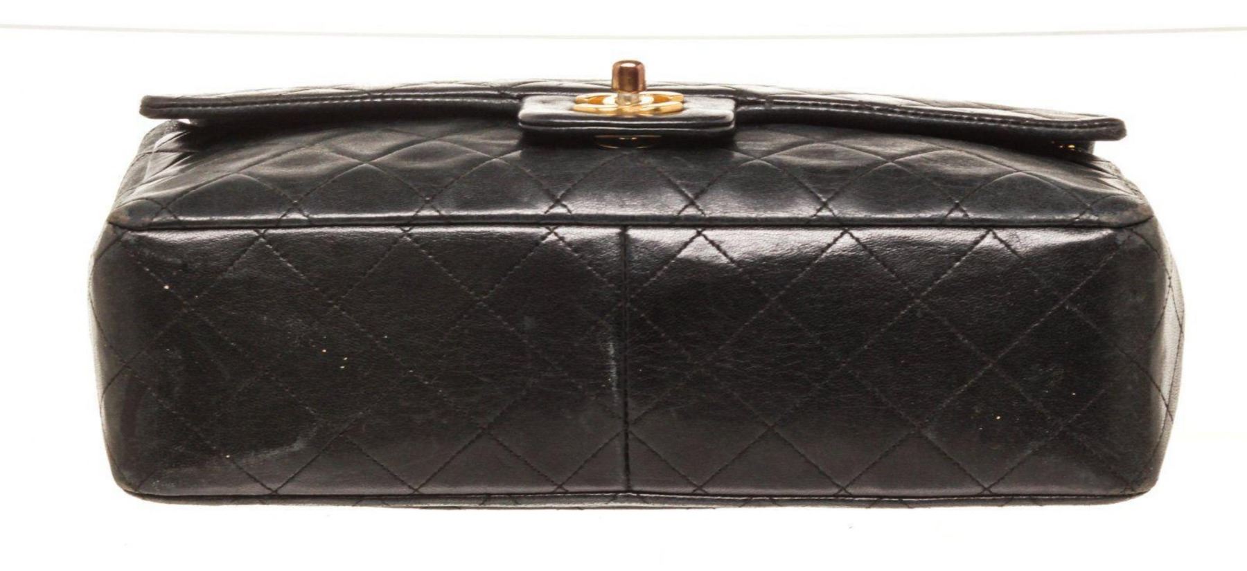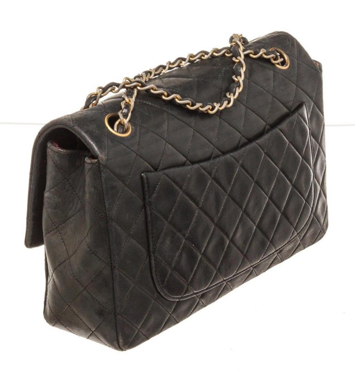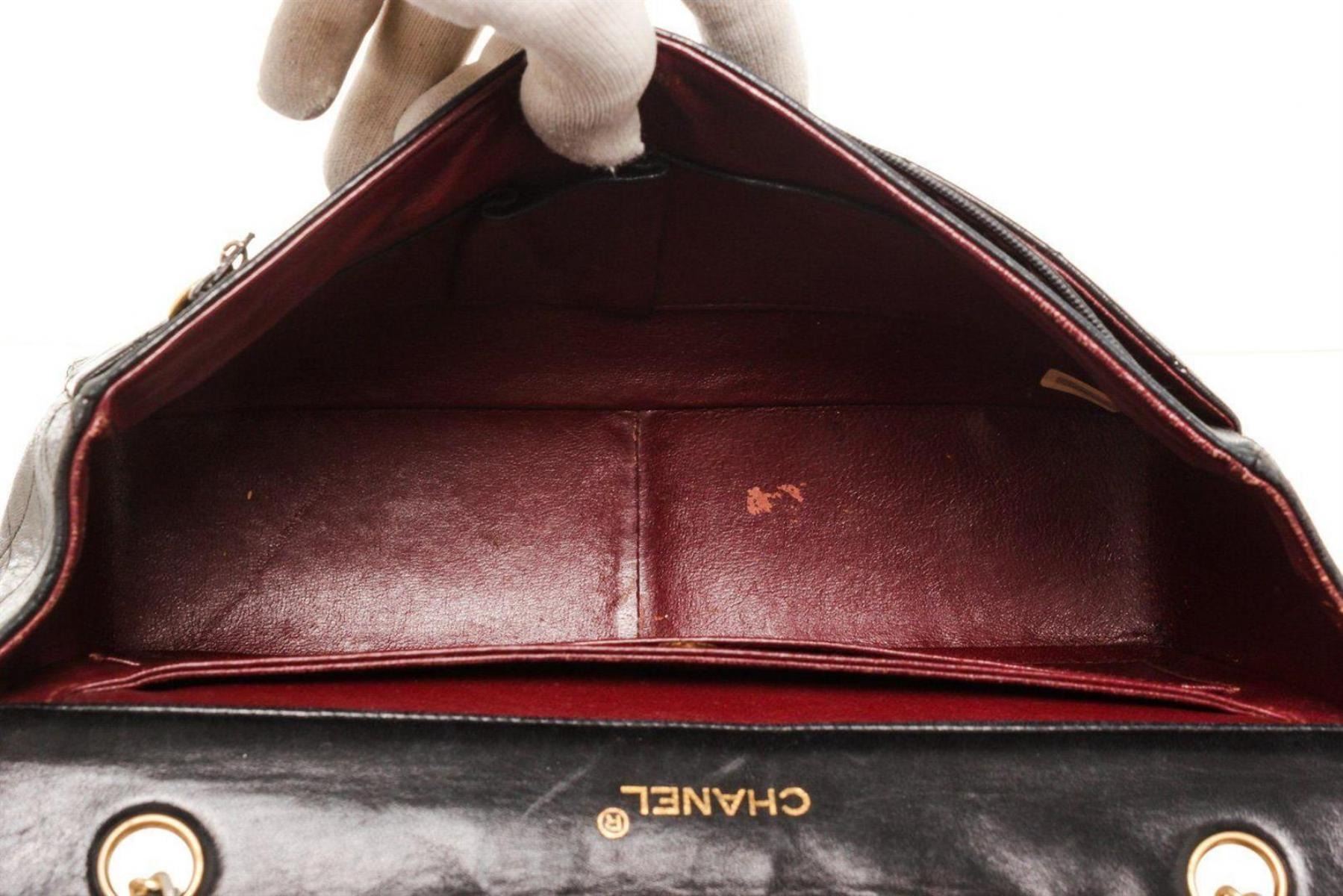 Chanel Black Leather Medium Single Flap Shoulder Bag with material leather, gold-tone hardware, interior slip pockets, chain shoulder strap and flap closure.