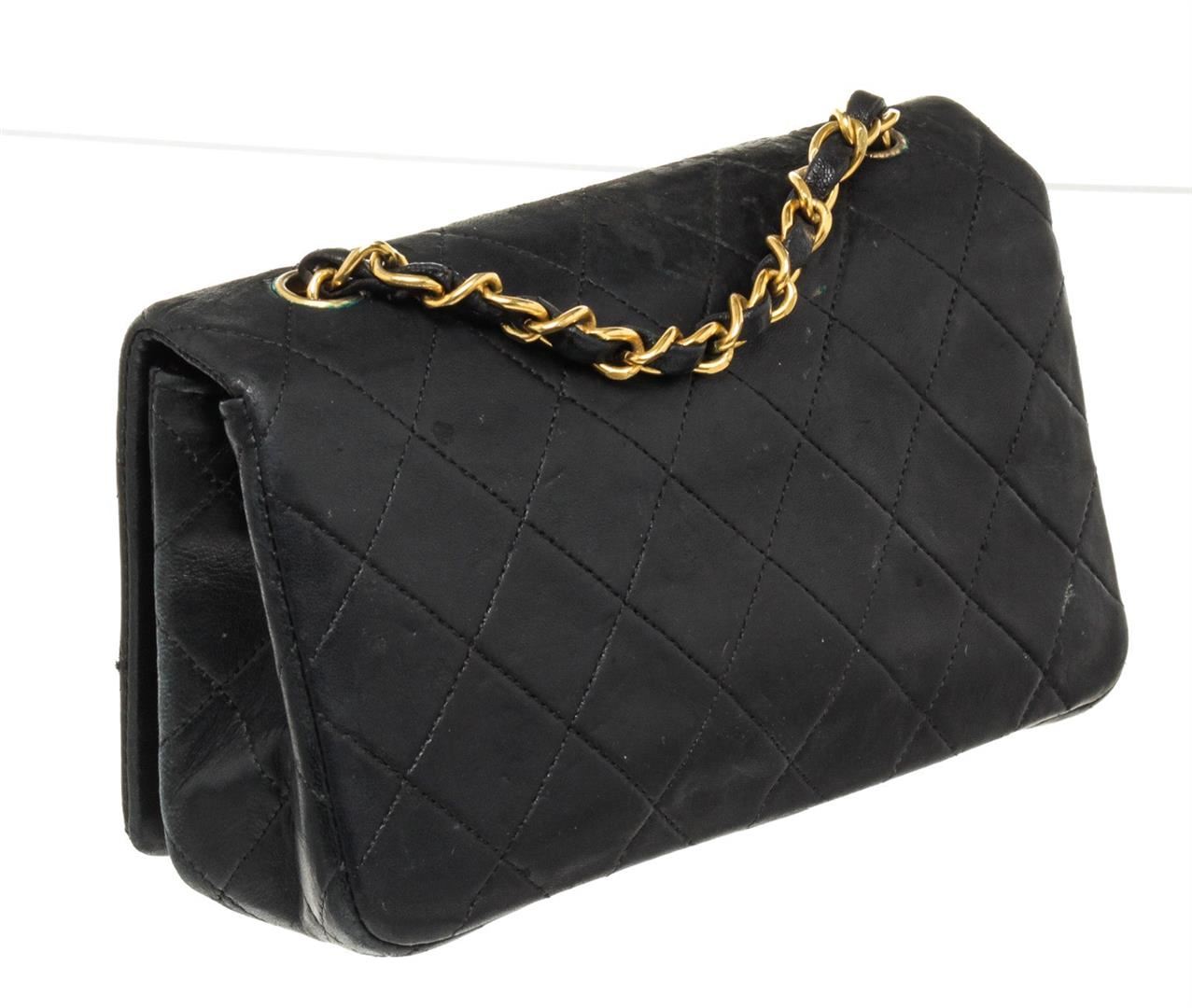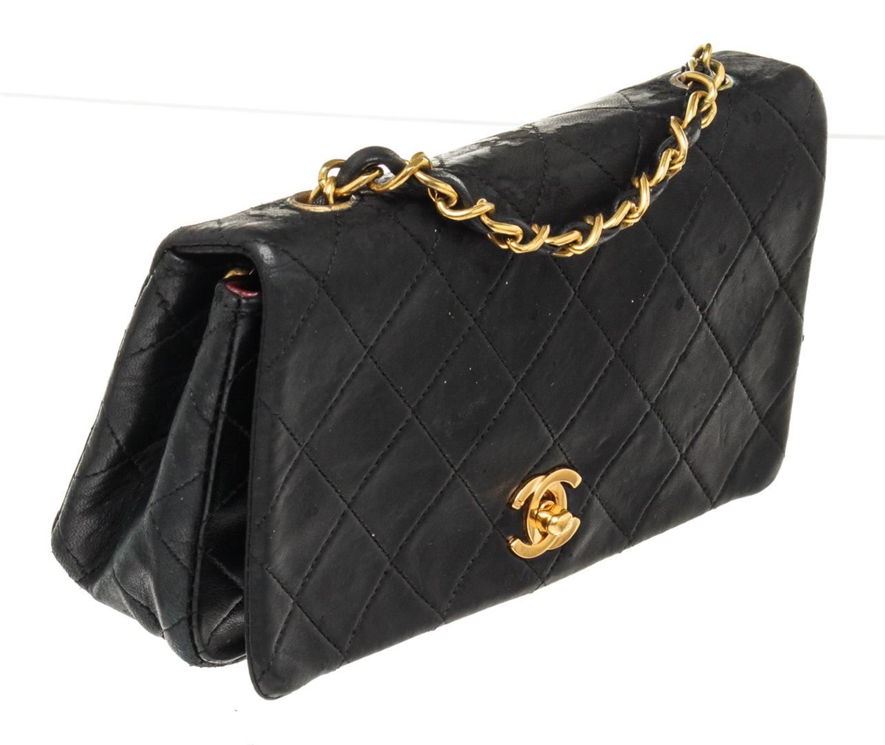 One Chanel Black Leather Mini Full Flap Shoulder Bag. Item is sold AS-IS. All available information is listed in the description and shown in the photo. Chanel Black Leather Medium Full Flap Shoulder Bag with leather, gold-tone hardware, interior slip pocket, chain shoulder strap and snap closure. PLEASE NOTE: bay has been redyed, base of bag is creased.
