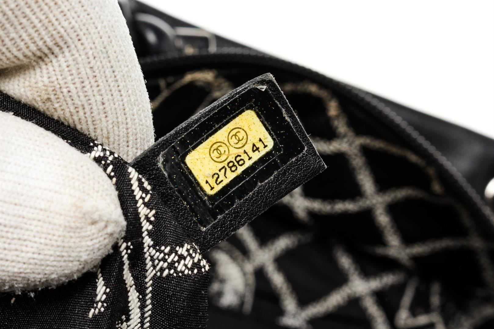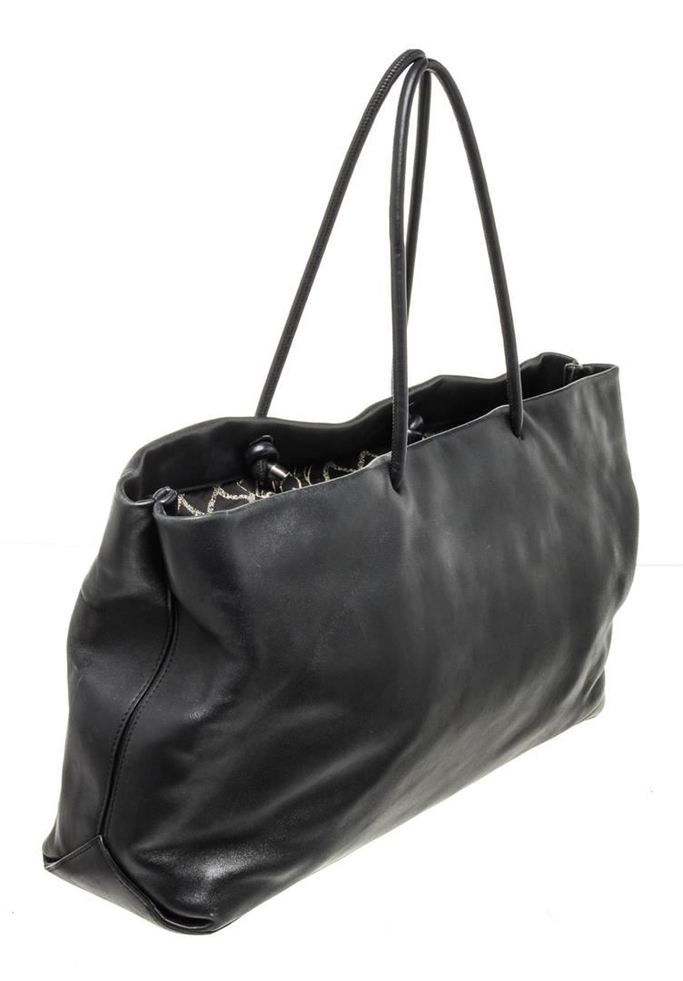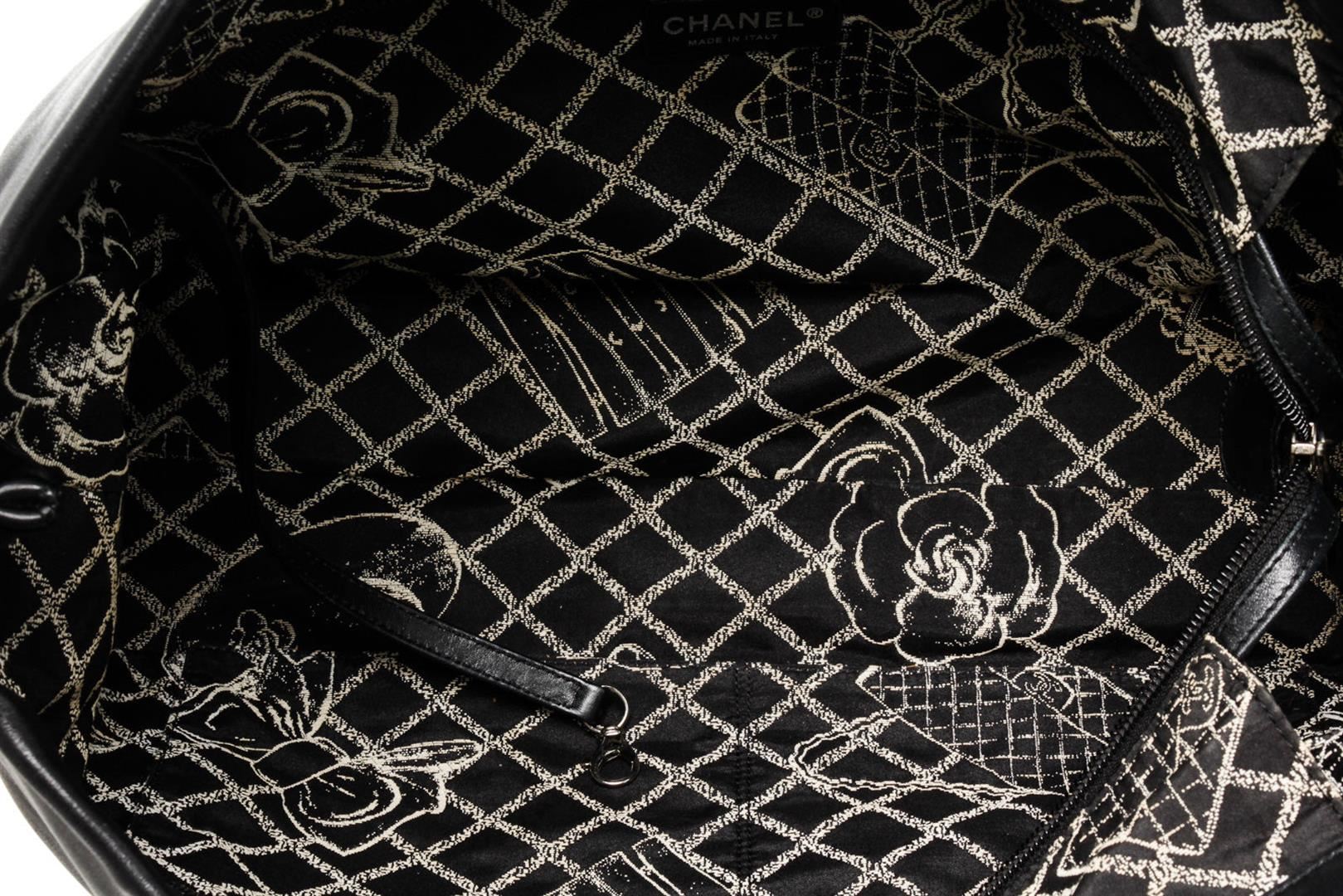 Chanel Black Leather Rue Cambon Tote Bag with leather, gold-tone hardware, interior slip pockets, shoulder strap and zipper closure.